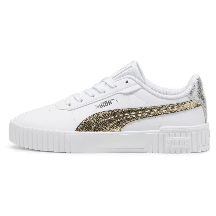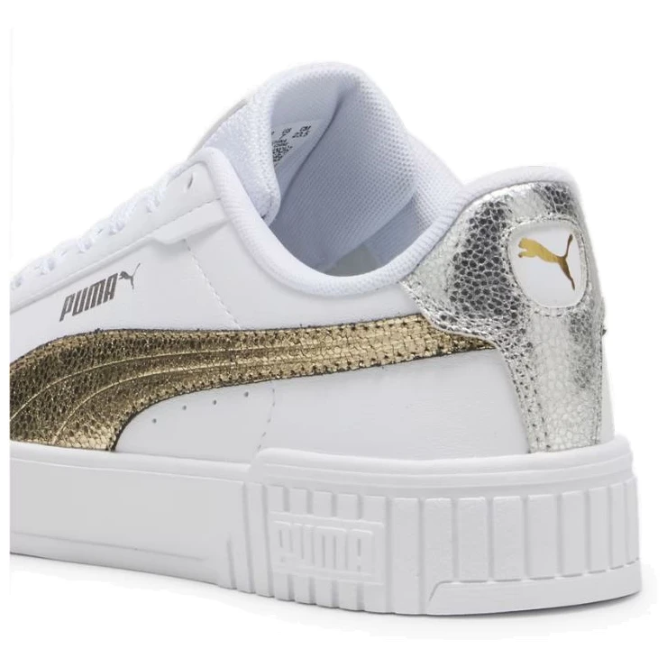 Damenschuhe Carina 2.0 Metallic Shine Puma überzeugen durch Obermaterial aus Leder und Synthetik, SoftFoam+ Innensohle mit hoher Dämpfung, hochwertige Gummisohle und recycelte Materialien.