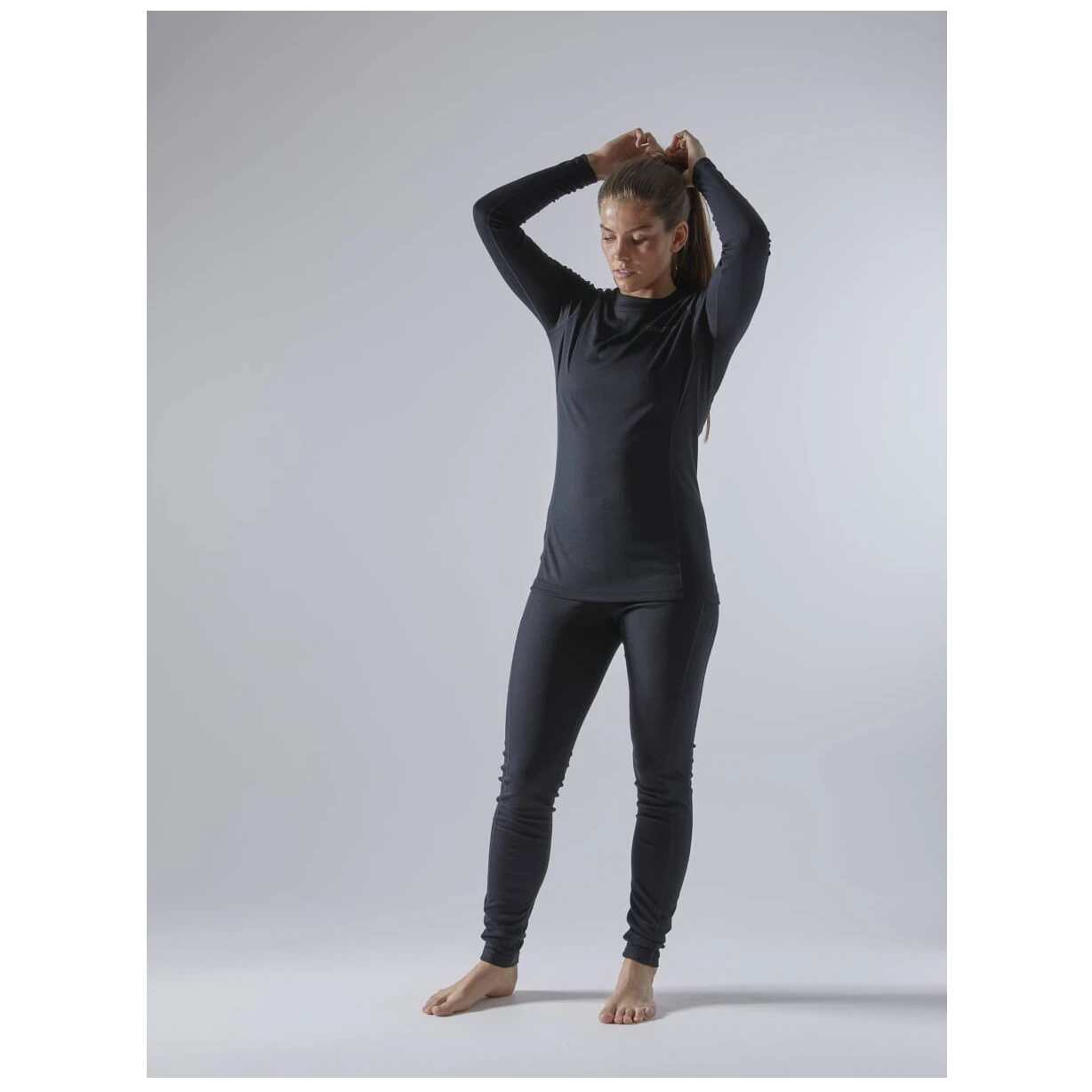 Funktionsunterwäsche-Set für Damen Craft Core Warm Baselayer aus der Serie Warm Intensity ist eine ideale Wahl zum Beispiel fürs Abfahrtskifahren oder Wandern. Das Set besteht aus einem langärmeligen T-Shirt mit bequemer, lockerer Passform. Und die Hose hat einen in die Taille eingenähten bequemen Gummizug. Dank Flachnähten ist die Kleidung äußerst bequem.