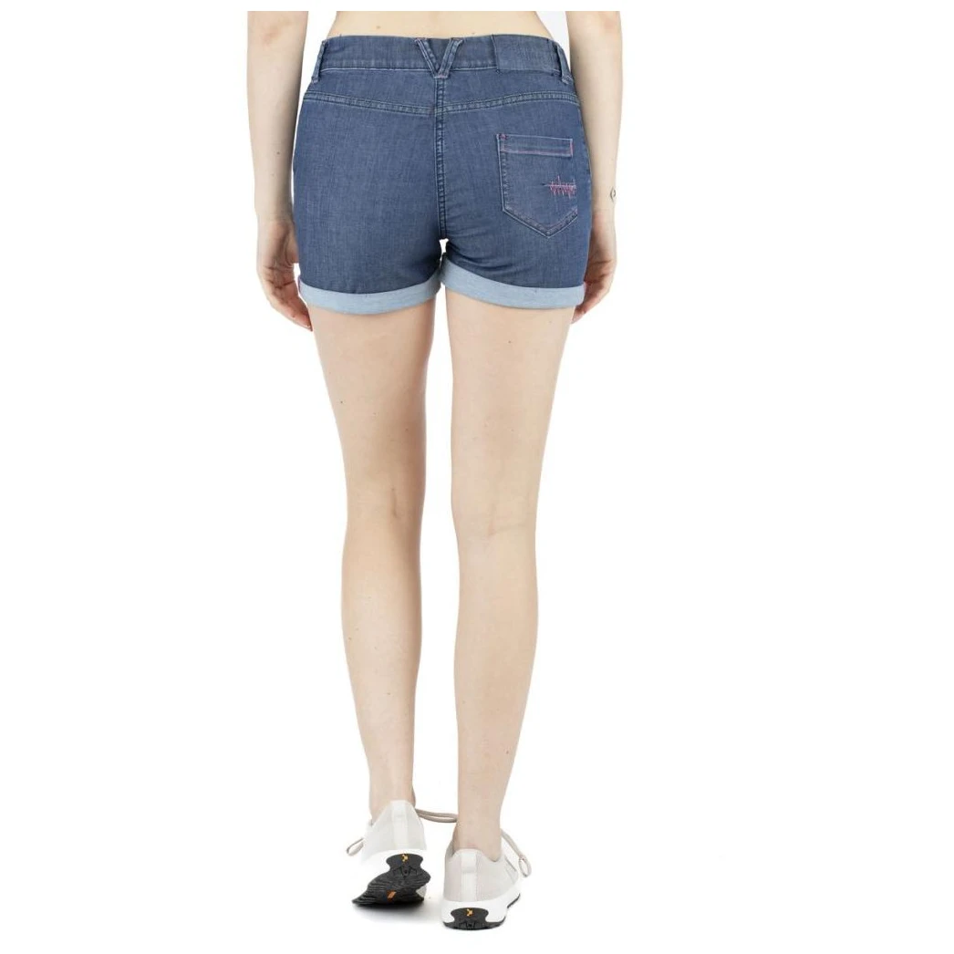 DieDamen Shorts Summer Splash der österreichischen Marke Chillaz bestehen aus hochwertigem Baumwoll-Polyester-Elasthan-Gewebe, das bis zu 2,2-fach dehnbar ist. Die schmale Passform mit funktionalen Details sorgt für vielfältige Einsatzmöglichkeiten. Die Shorts haben Zwickeltaschen und eine Tasche auf der Rückseite. Sie machen darin sowohl in der Stadt als auch in der Natur eine tolle Figur.