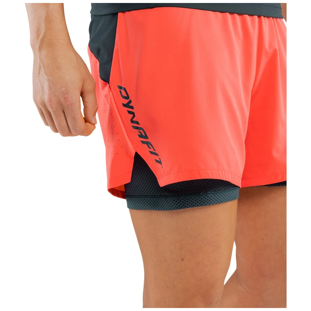 DieDamen Shorts Alpine Pro 2/1 Shorts W von Dynafit eignen sich perfekt zum Trailrunning. Die 2-in-1-Shorts mit Mesh-Einsatz bestehen aus recyceltem Polyester, Polyamid und Elasthan für mehr Flexibilität. Diese smarten Shorts haben ein transparentes Oberteil und verhindern dank des Mesh-Einsatzes ein unangenehmes Reiben an den Innenseiten der Oberschenkel. Das hochwertige Gewebe liegt sehr angenehm auf der Haut, leitet Feuchtigkeit ab und sorgt für hohe Atmungsaktivität und Belüftung bei anstrengenden Läufen.