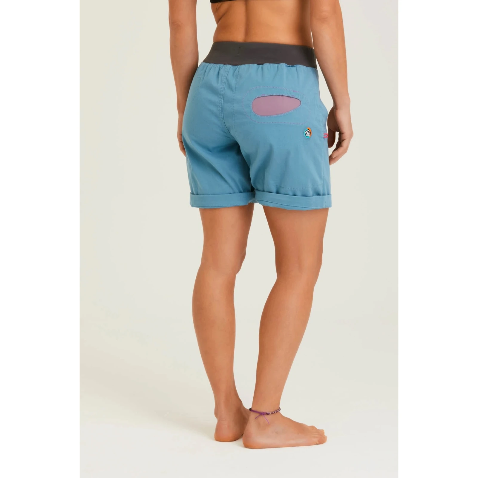 Die modernen Damen Klettershorts Onda Short der italienischen Marke E 9 sind die ideale Wahl für jede Kletterbegeisterte, die beim Klettern und im Alltag maximalen Komfort schätzt. Für Tragekomfort sorgen vor allem das angenehme Material, welches zu 98 % aus Bio-Baumwolle besteht undein breiter Gummibund mit Verschluss. Eine schmeichelhafte Schnittführung sorgt für eine optimale Passform ohne Einschränkungen. Außerdem verfügen die Shorts über Schlaufen zum Aufbewahren einer Zahnbürste oder stylische Taschen mit rundem Eingriff im kontrastreichen Design, mit denen Du auf den ersten Blick auffällst.