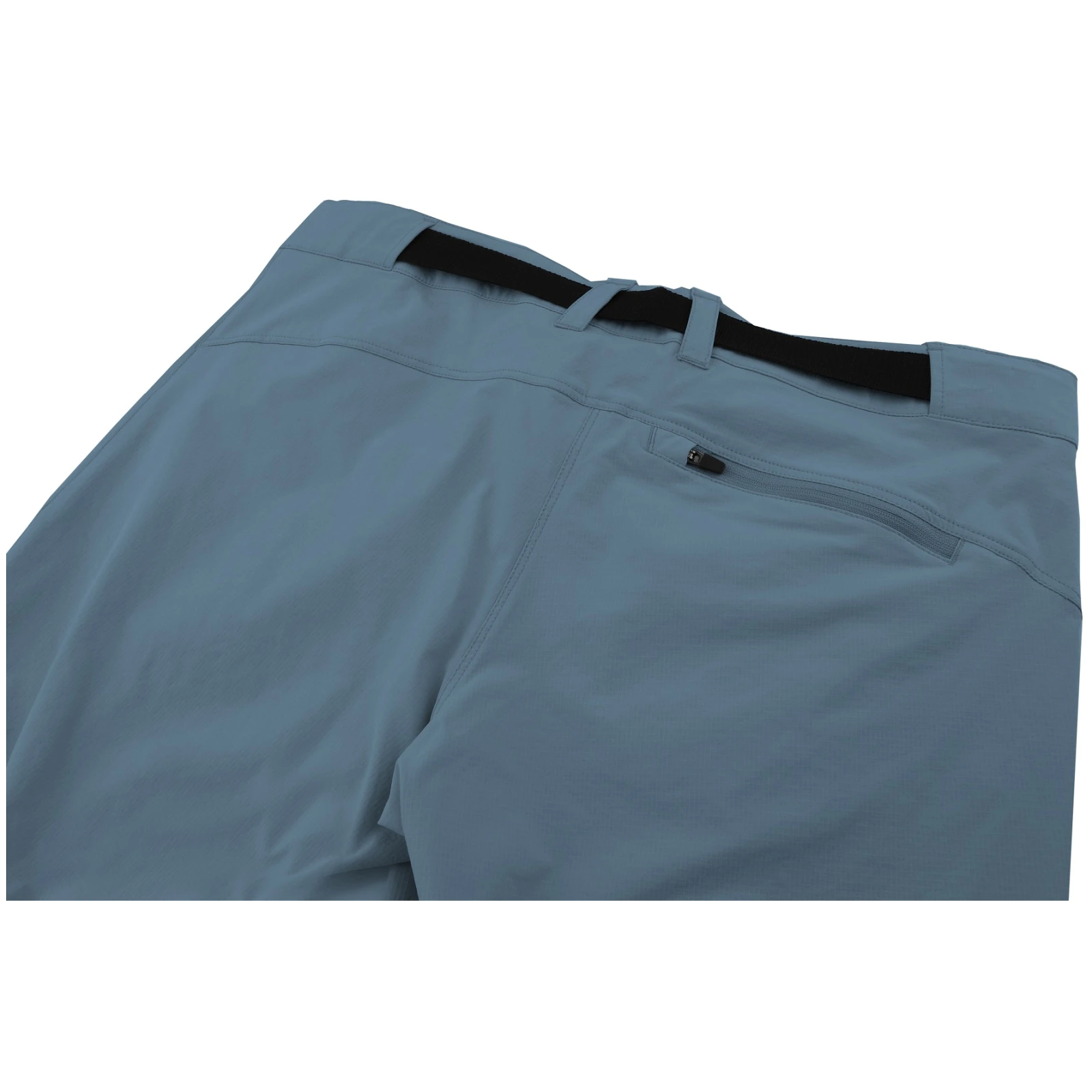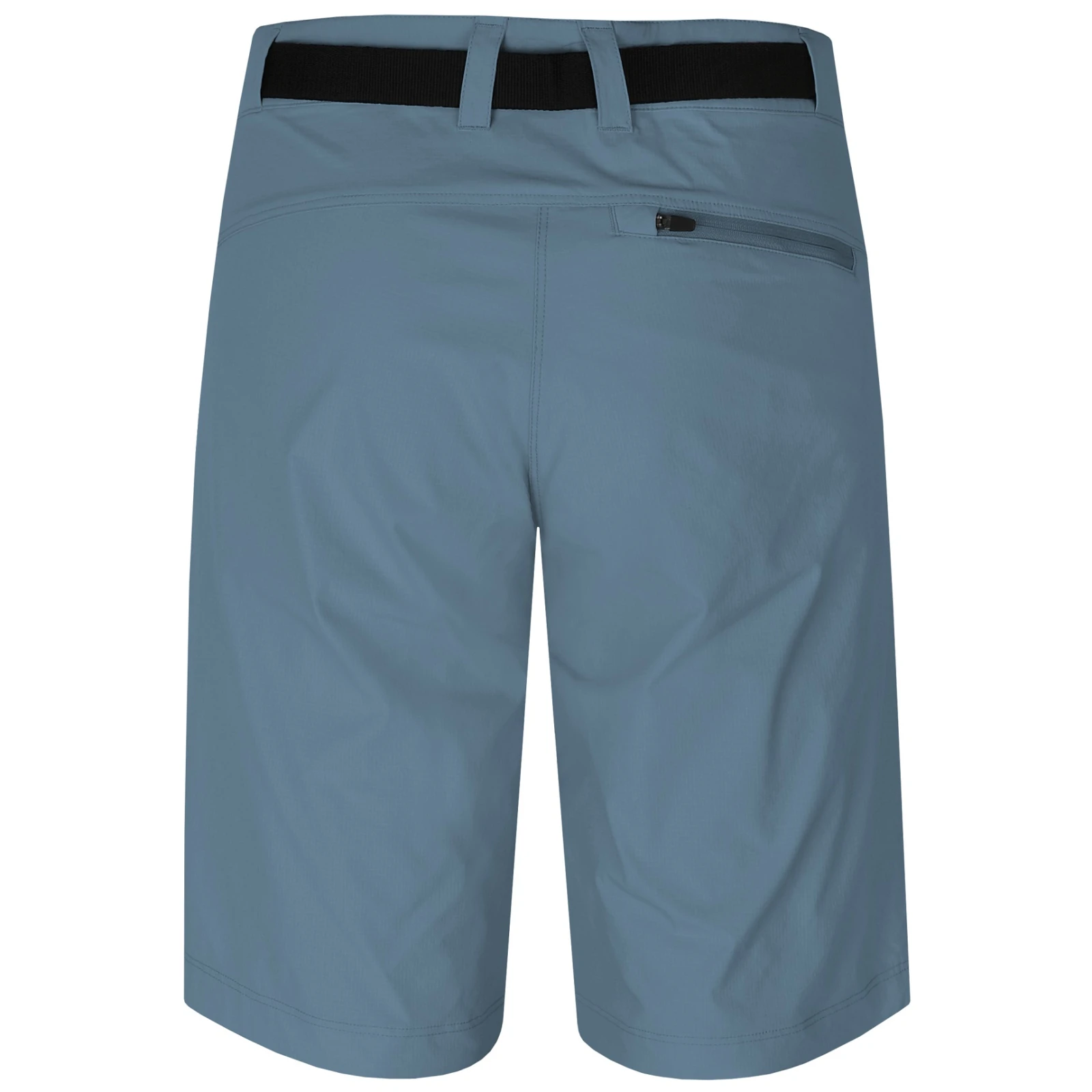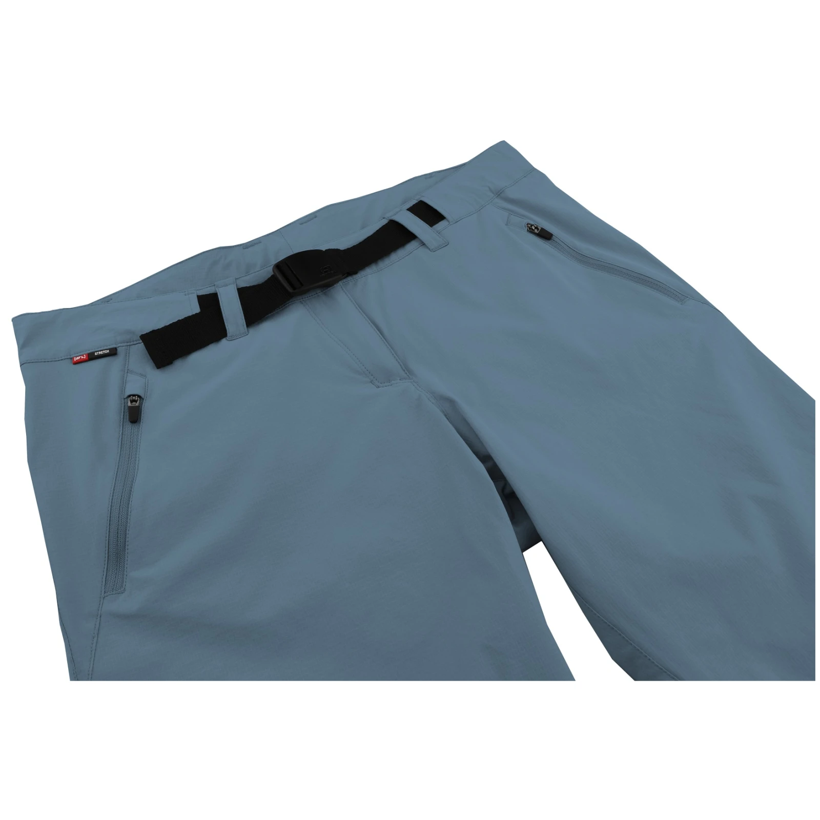 Sie bestehen aus dem Stretchmaterial AFT Stretch. Dieses synthetische Material mit einer Beimischung von Elasthan garantiert Tragekomfort und maximale Bewegungsfreiheit bei jeder Aktivität. Der Stoff ist leicht, atmungsaktiv und angenehm anzufassen. Das Material bietet UV-30-Schutz. Den Taillenumfang kannst Du durch einen Gürtel Deiner Weite anpassen. Die Shorts haben insgesamt drei Reißverschlusstaschen, zwei Haupttaschen vorne und eine Tasche hinten.