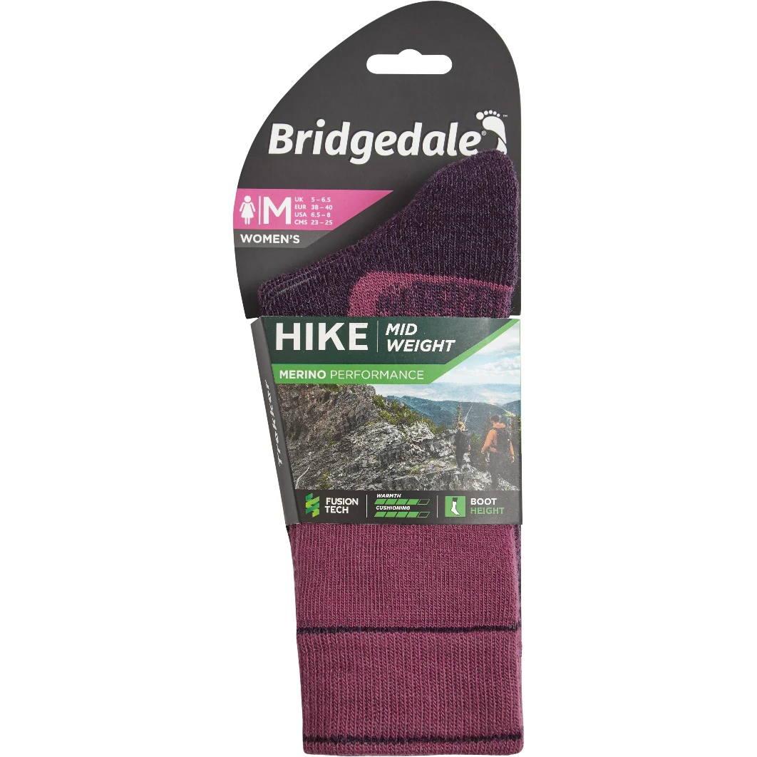 Die Hike Midweight Merino Performance Boot Women's Wandersocken des renommierten britischen Herstellers Bridgedale ersetzen das revolutionäre Modell WoolFusion Trekker Women's. Dank der verwendeten Materialien und einzigartigen Technologien eignen sich die Socken für Ein- und Mehrtagestouren zu jeder Jahreszeit. Der Hersteller lässt seine Produkte direkt im Feld testen und garantiert so höchste Material- und Verarbeitungsqualität. Die Höhe der Stiefelsocken ist für knöchelhohe Wanderschuhegeeignet.