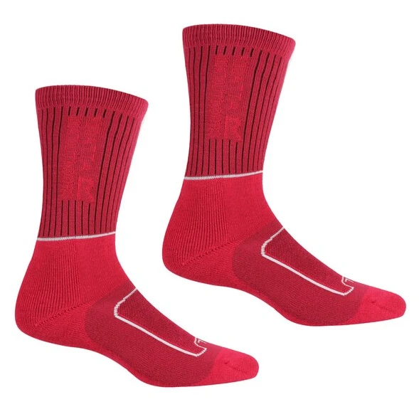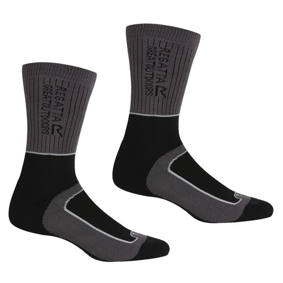 Warm, atmungsaktiv und bequem – die Damensocken Samaris 2 Season von Regatta sind bereit für Abenteuer im Freien. Damen-Wandersocken mit einer Coolmax-Mischung sorgen für atmungsaktive und langlebige Kleidung. Außerdem ist Stretchgewebe zum leichteren An- und Ausziehen vorhanden. Der verstärkte Ristschutz verringert den Druck durch die Schnürsenkel und die gepolsterte Zehenpartie und Dämpfung federt Stöße auf der Straße ab. Antibakterielle Eigenschaften und Luftkanäle unter den Füßen halten Sie frisch. Ideal zum Spazierengehen, Wandern und Spazierengehen. 2 Paar im Paket.