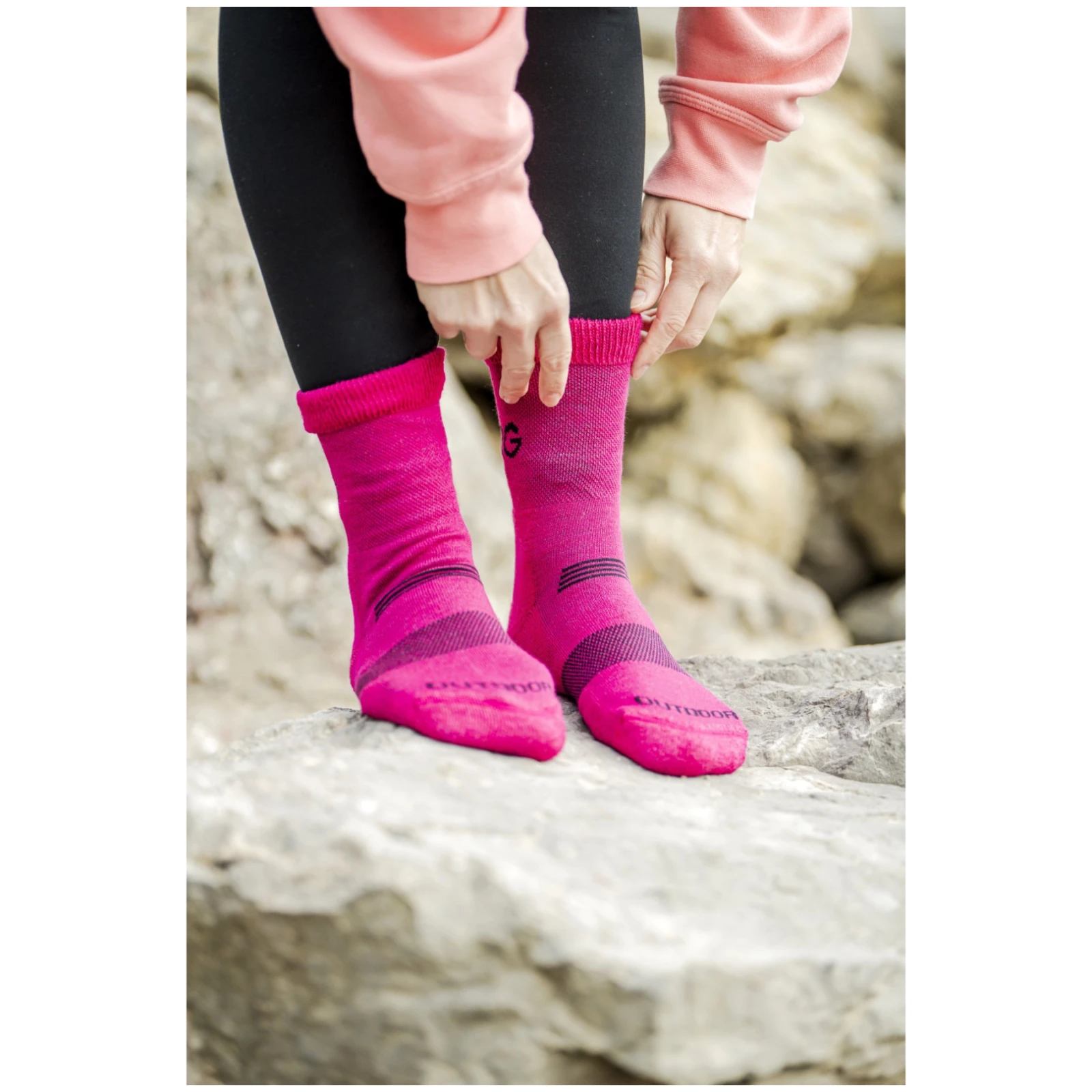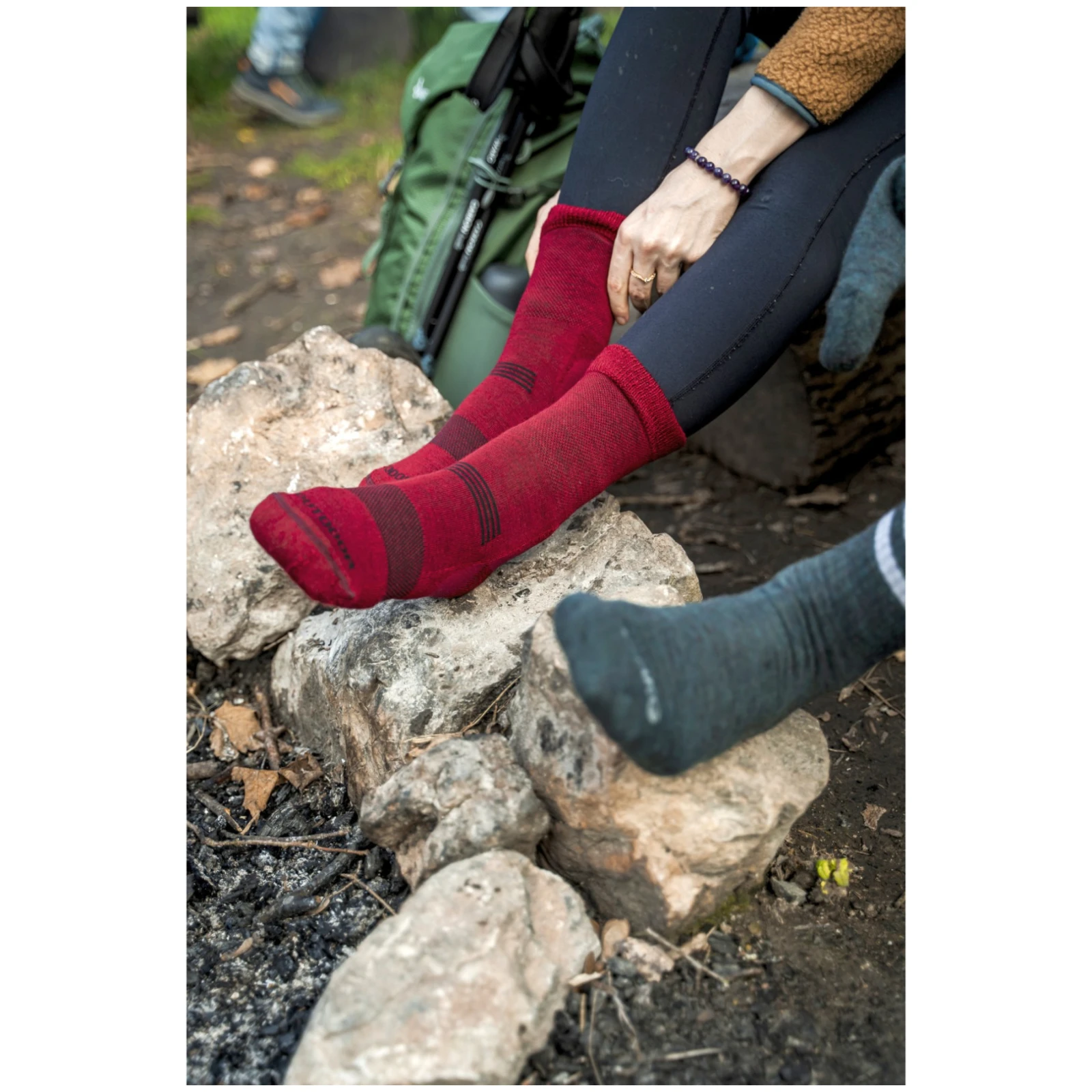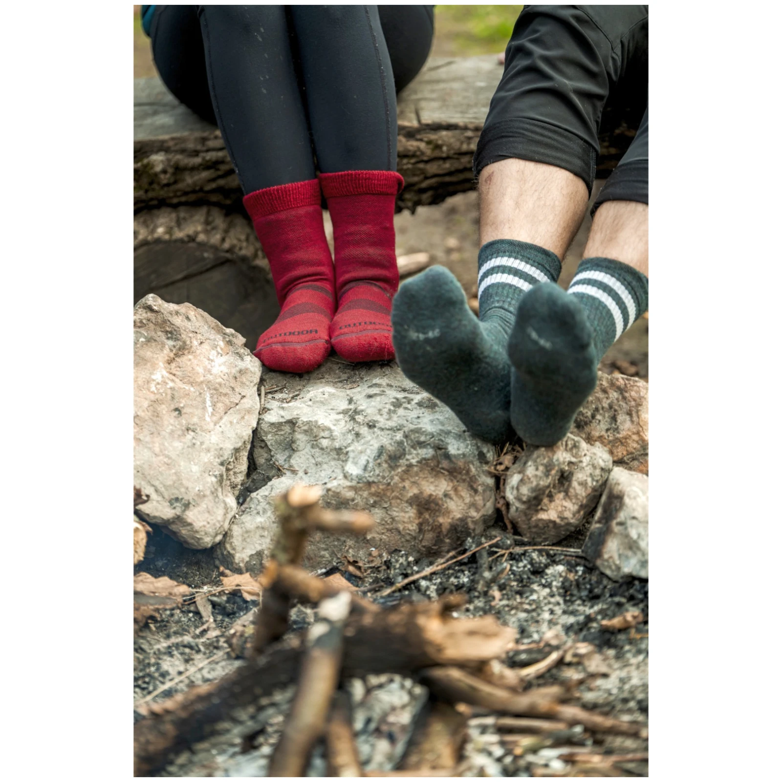 Socken Warg Merino Hike sind höhere Socken, die Ihren Füßen auch bei anstrengenden und längeren Bewegungen Komfort bieten. Die Kombination von Merino Wolle mit Kunstfasern sorgt für ausgewogene Isolationseigenschaften bei höchstem Tragekomfort. Das Torsionsfixierungssystem über dem Rist und die verstärkte Ferse mit Zehenpartie sorgen den ganzen Tag über für angenehmen Tragekomfort. Eine großartige Wahl für mehrtägiges Trekking und Wandern.
