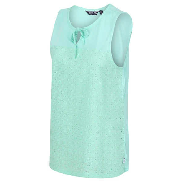 Das stylische Damen Tank Top Janessa vom Hersteller Regatta ist eine ideale Wahl für den Sommer, für den Alltag und Spaziergänge in der Natur. Das Tanktop besteht aus hoch atmungsaktiver und weicher, nachhaltiger Coolweave-Baumwolle mit seidenartiger Viskose für eine frische und bequeme Passform. Das Tanktop verfügt über einen stylischen Print und einen V-Ausschnitt mit Bindedetails.
