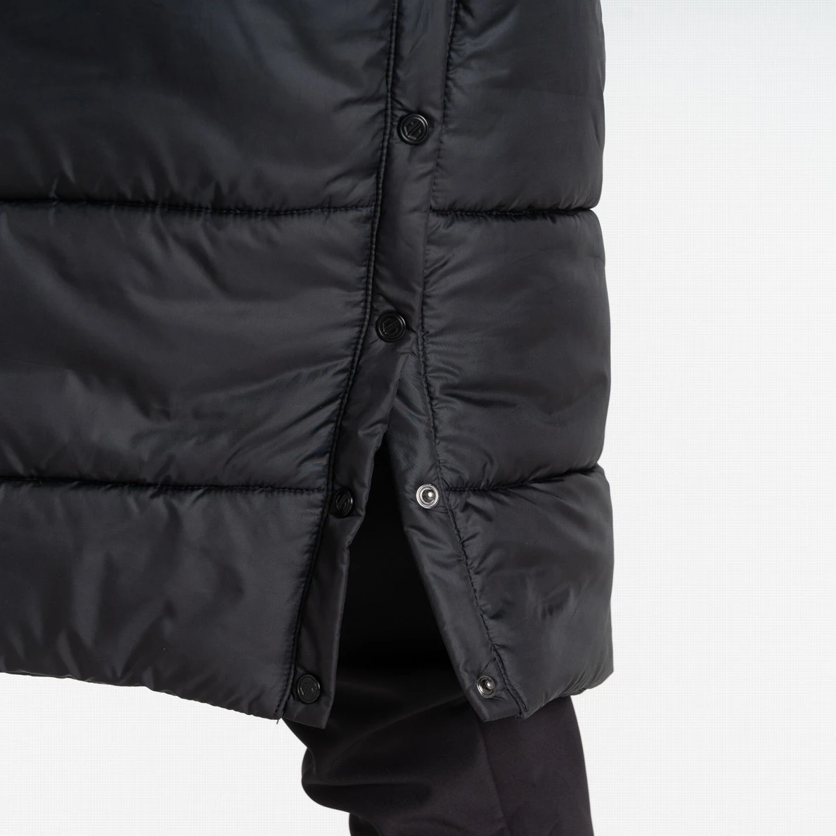 Das Außenmaterial besteht aus recyceltem Polyester, welches über eine wasserabweisende Beschichtungverfügt. Im Inneren befindet sich eine hoch wärmende ILoft-Ecofill-Füllung, die trotz ordentlicher Wattierung die Bewegungsfreiheit nicht einschränkt, was auch an den seitlichen Schlitzen im unteren Bereich liegt, die sich mit Druckknöpfen verschließen lassen. Die Weste hat eine warme Kapuze, zwei Reißverschlusstaschen , die sich perfekt zum Aufwärmen kalter Hände eignen, und eine Brusttasche.