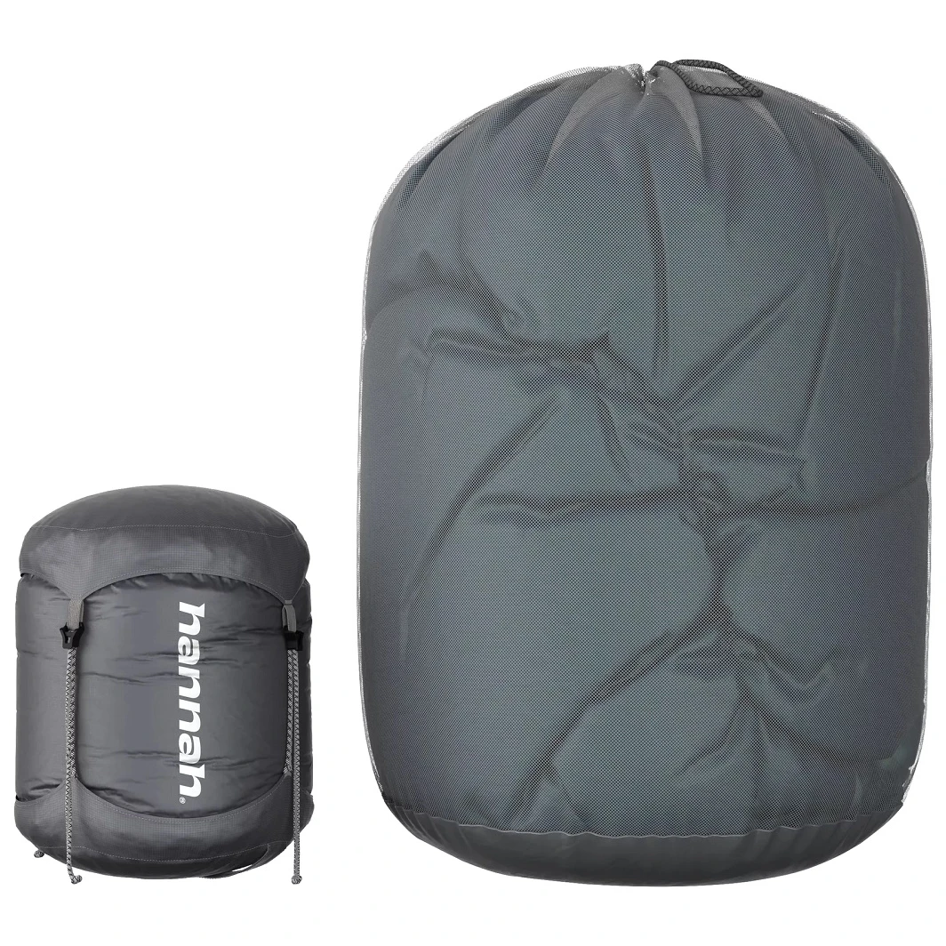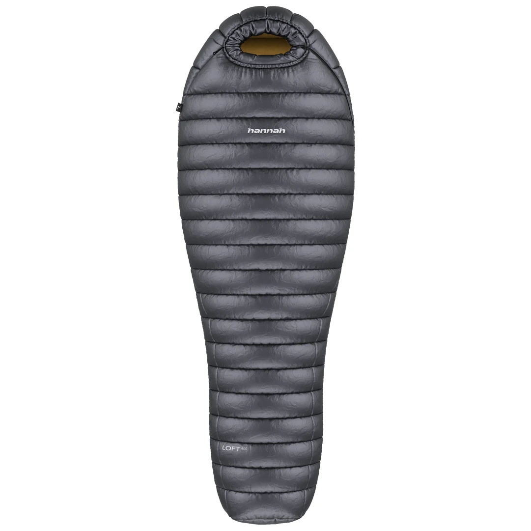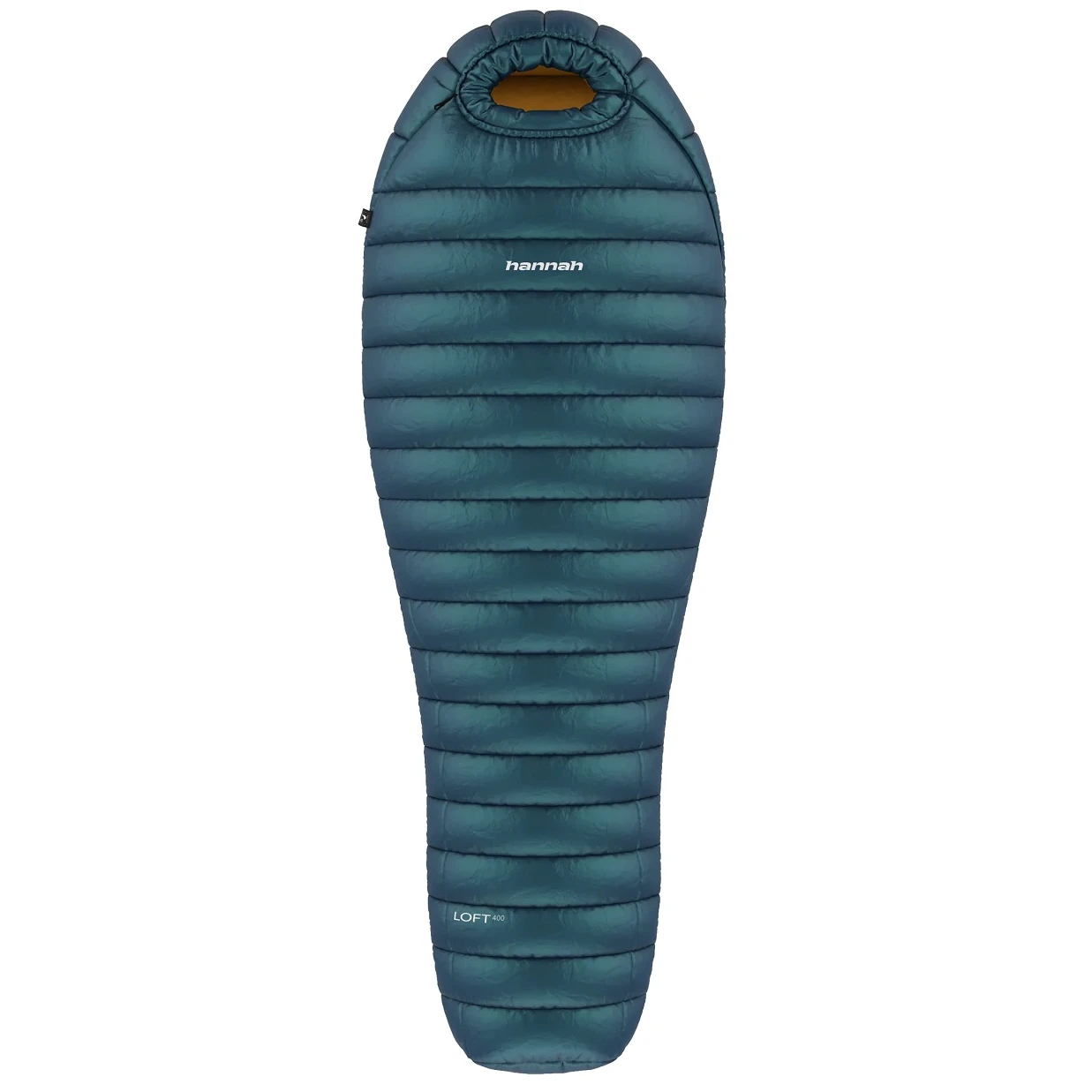 Drei-Jahreszeiten-Schlafsack Hannah Loft 400, gefüllt mit hochwertiger europäischer Gänsedaune - 750er Füllkraft, das Außenmaterial besteht aus atmungsaktivem Ripstop 20D Nylon (mit Reißschutz) mit einer DWR (Durable Water Repellent) Behandlung, die das Gewebe wasserabweisend macht. Der durchdachte Aufbau der Kammerfüllung sorgt für angenehmen Schlafkomfort auch bei hohen Temperaturen.