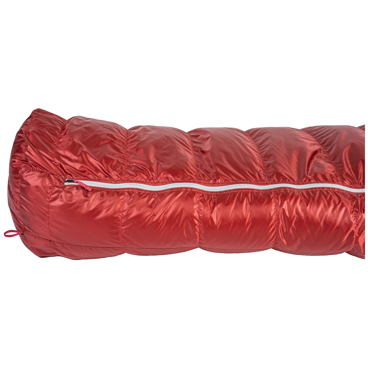 Maximalen thermischen Komfort gewährleisten hypoallergene Entendaunen höchster Qualität (IDFL, RDS) mit einer Füllkraft von mindestens 700+ cuin. Die Z-förmige Kammergestaltung sorgt für eine gleichmäßige Verteilung der Füllung. Im Kragenbereich, rund um die anatomisch geformte Kapuze, befindet sich eine Füllung aus hochwertigem Synthetik-Isoliermaterial, das ausgeatmete Feuchtigkeit besser zurückhält und Druck durch den Kordelzug verhindert. Zu den weiteren Vorteilen des Schlafsacks gehört beispielsweise der innovative halbautomatische SHZ-Reißverschluss.