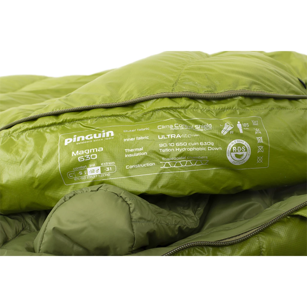 Die äußere Schicht besteht aus Nylon-Ripstop-Gewebe mit Clima Control Shield-Behandlung, die das Entweichen warmer Luft von innen verhindert und gleichzeitig für ausreichende Atmungsaktivität sorgt. Die wasserabweisende Imprägnierung sorgt für ausreichend Schutz vor widrigen Witterungsbedingungen. Der abnehmbare, isolierte Schulterkragen verhindert Wärmeverlust und das Eindringen von Feuchtigkeit in den Schlafsack.