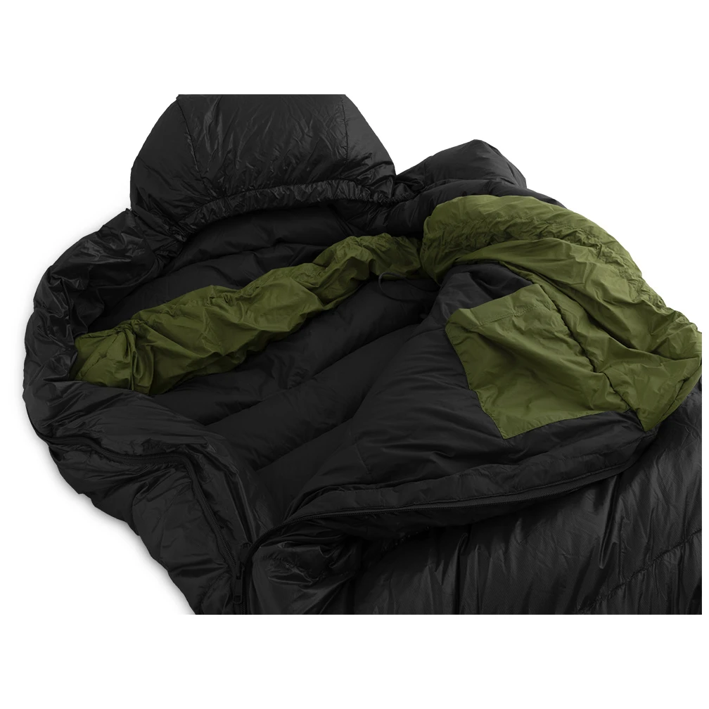 Der Schlafsack hat ein anatomisches Design, um die Wirksamkeit des Schlafsacks zu erhöhen. Der YKK-Reißverschluss ist mit einer gepolsterten Klappe ausgestattet, die verhindert, dass Wärme durch den Reißverschluss entweicht. Der Schieber ist zusätzlich mit einem Einklemmschutzausgestattet. Im Inneren des Schlafsacks findest du eine Reißverschlusstasche für Ausrüstungsgegenstände, die vor Kälte geschützt werden müssen (Telefon, Powerbank, Kameraakku). Die Kapuze lässt sich mit zwei Kordeln, einem runden Gummiband und einer flachen Schnürung verstellen - so erkennt man auch im Dunkeln, welchen Teil der Kapuze man gerade herunterzieht.