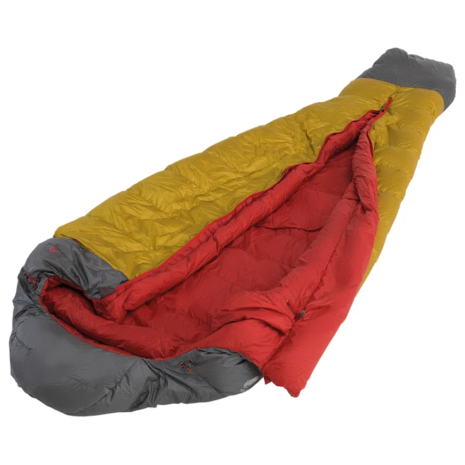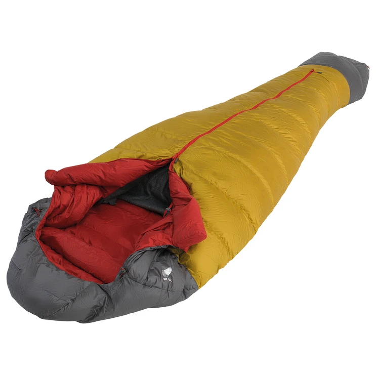 Die Füllung aus Entendaunen mit einer Füllkraft von 700 cuin und einem Daunen-Feder-Verhältnis von 95/5 sorgt für eine perfekte Isolierung. Hierzu trägt auch der neu geformte Thermokragenbei, der sich eng um die Schultern legt und so Wärmeverlust verhindert. Die Kapuze ist an beiden Seiten mit Kordelzügen ausgestattet. Die bequeme Mumien-3D-Form verbessert die Wärmeisolierung und sorgt für Tragekomfort. Der Bereich um die Füße ist speziell geformt und erinnert an eine Haifischflosse. Dadurch können die Beine nachts in einer gestreckten natürlichen Position verbleiben.
