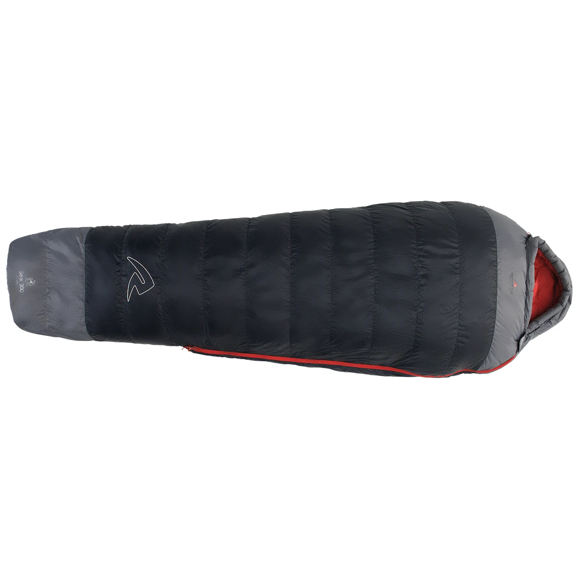 Die Füllung aus Entendaunen mit einer Füllkraft von 600 cuin und einem Daunen-Feder-Verhältnis von 85/15 sorgt für eine perfekte Isolierung. Hierzu trägt auch die Kapuze bei, die über einen Kordelzug verfügt und so bei Bedarf Gesicht und Schultern bedeckt. Die bequeme Mumien-3D-Form verbessert die Wärmeisolierung und sorgt für Tragekomfort. Durch den Dachbodenerweiterer lässt sich der Platz im Inneren stetig vergrößern. Der Bereich um die Füße ist speziell geformt und erinnert an eine Haifischflosse. Dadurch können die Beine nachts in einer gestreckten natürlichen Position verbleiben.