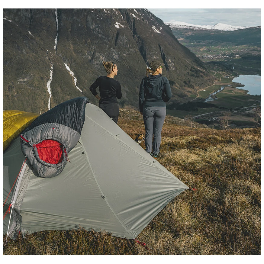 Die Füllung aus Entendaunen mit einer Füllkraft von 600 cuin und einem Daunen-Feder-Verhältnis von 85/15 sorgt für eine perfekte Isolierung. Hierzu trägt auch die Kapuze bei, die über einen Kordelzug verfügt und so bei Bedarf Gesicht und Schultern bedeckt. Die bequeme Mumien-3D-Form verbessert die Wärmeisolierung und sorgt für Tragekomfort. Durch den Dachbodenerweiterer lässt sich der Platz im Inneren stetig vergrößern. Der Bereich um die Füße ist speziell geformt und erinnert an eine Haifischflosse. Dadurch können die Beine nachts in einer gestreckten natürlichen Position verbleiben.