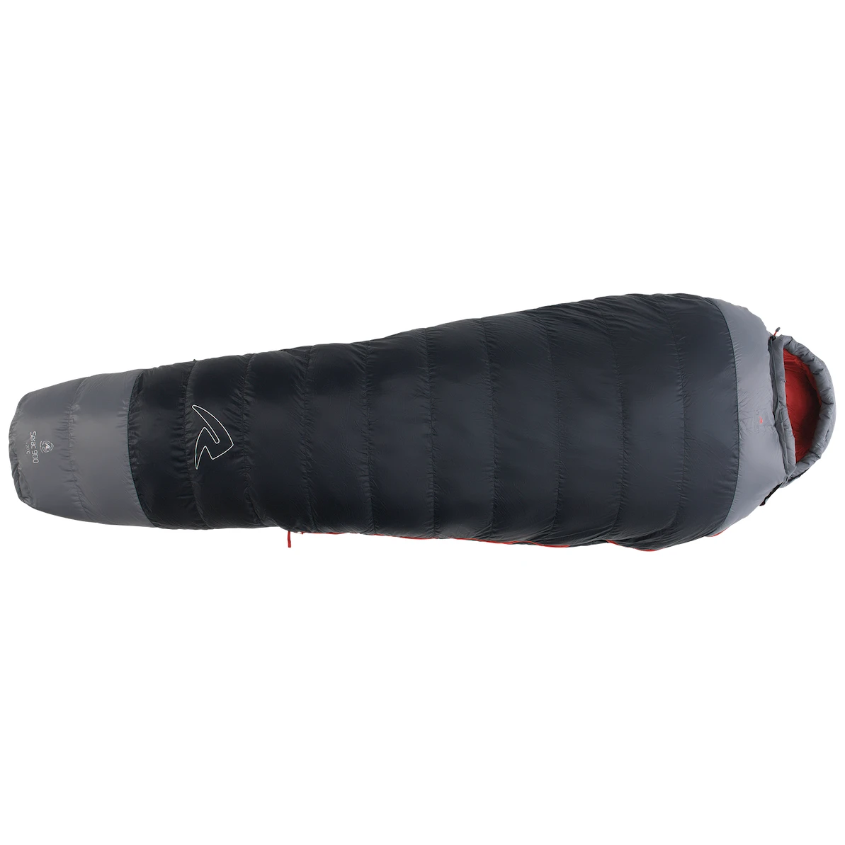 Die Füllung aus Entendaunen mit einer Füllkraft von 600 cuin und einem Daunen-Feder-Verhältnis von 85/15 sorgt für eine perfekte Isolierung. Hierzu trägt auch die Kapuze bei, die über einen Kordelzug verfügt und so bei Bedarf Gesicht und Schultern bedeckt. Die bequeme Mumien-3D-Form verbessert die Wärmeisolierung und sorgt für Tragekomfort. Durch den Dachbodenerweiterer lässt sich der Platz im Inneren stetig vergrößern. Der Bereich um die Füße ist speziell geformt und erinnert an eine Haifischflosse. Dadurch können die Beine nachts in einer gestreckten natürlichen Position verbleiben.