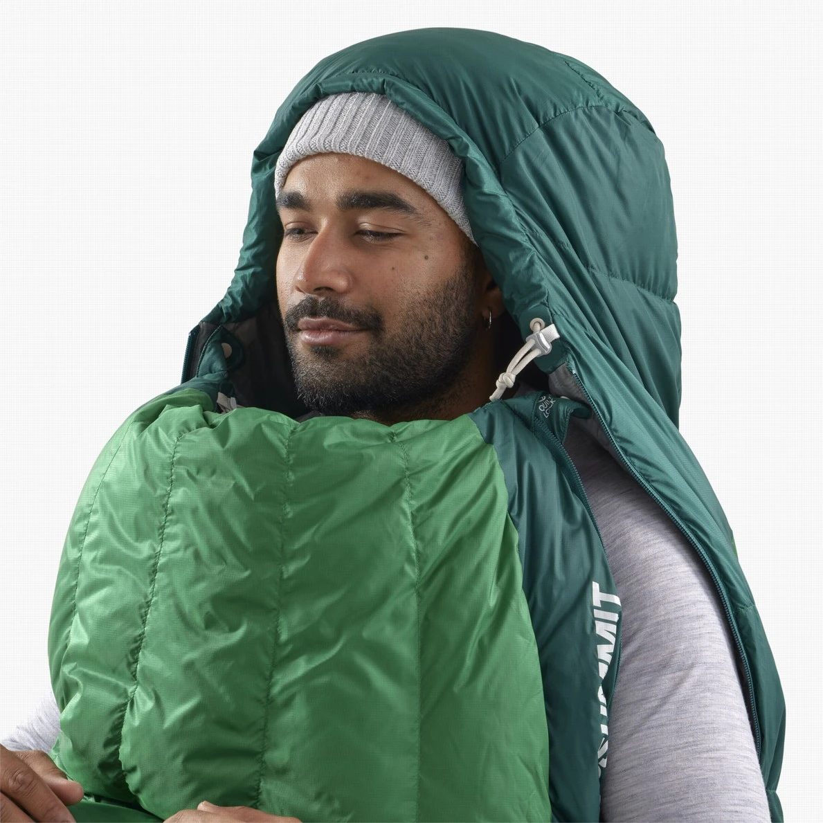 Der Ascent -1C Long Daunenschlafsack der Marke Sea to Summit hat die Form eines abgeschrägten Rechtecks, welches großzügiges Platzangebot bietet. Darüber hinaus lässt sie sich komplett öffnen, sodass eine luxuriöse Daunendecke entsteht. Der Schlafsack findet bei Abenteuern zwischen Frühling und Herbst Verwendung.