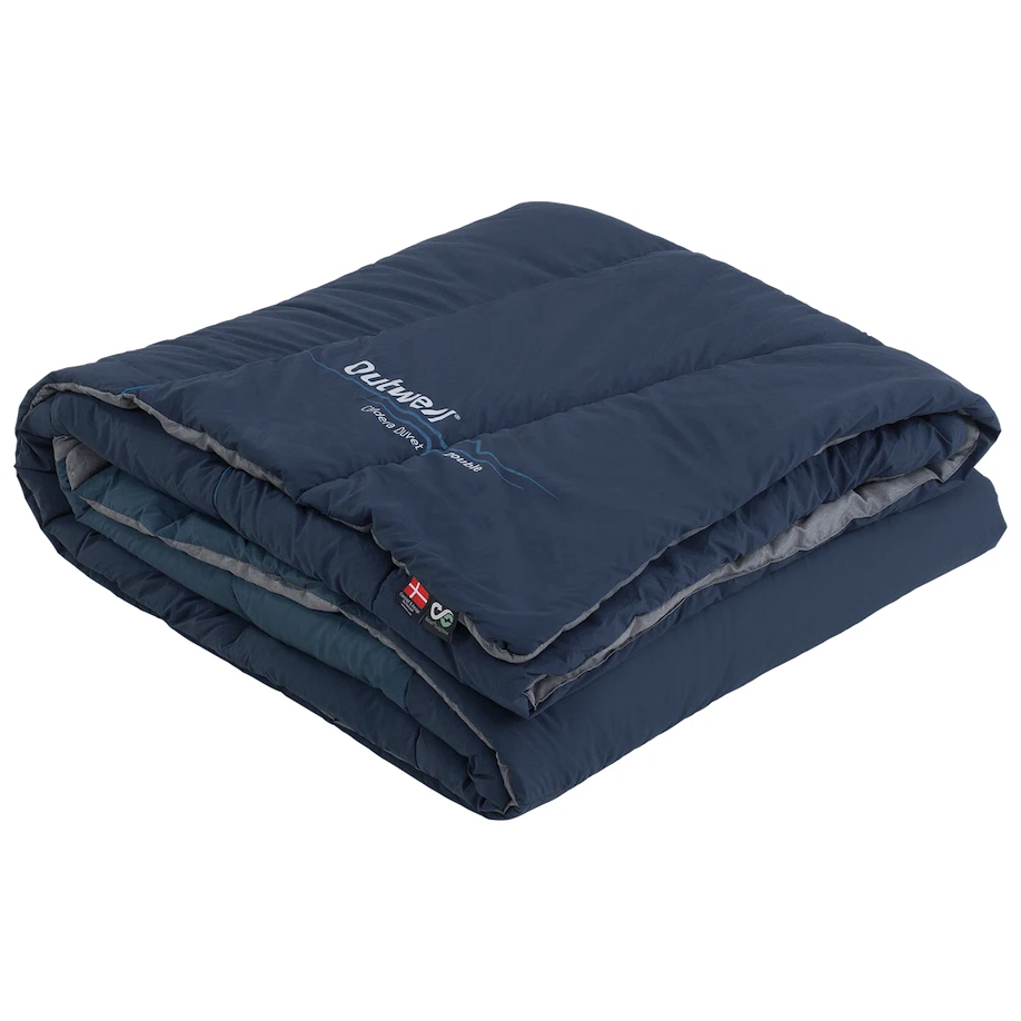 Zwei-Jahreszeiten-Bettdecke Die Caldera-Bettdecke der dänischen Marke Outwell ist die perfekte Wahl zum Campen, für die Hütte oder unter dem Zelt und gewährleistet maximalen Schlafkomfort, der mit Sicherheit mit dem Komfort zu Hause mithalten kann. Es ist für den Zeitraum vom späten Frühjahr bis zum frühen Herbst konzipiert und bietet bequem Platz für zwei Personen darunter.