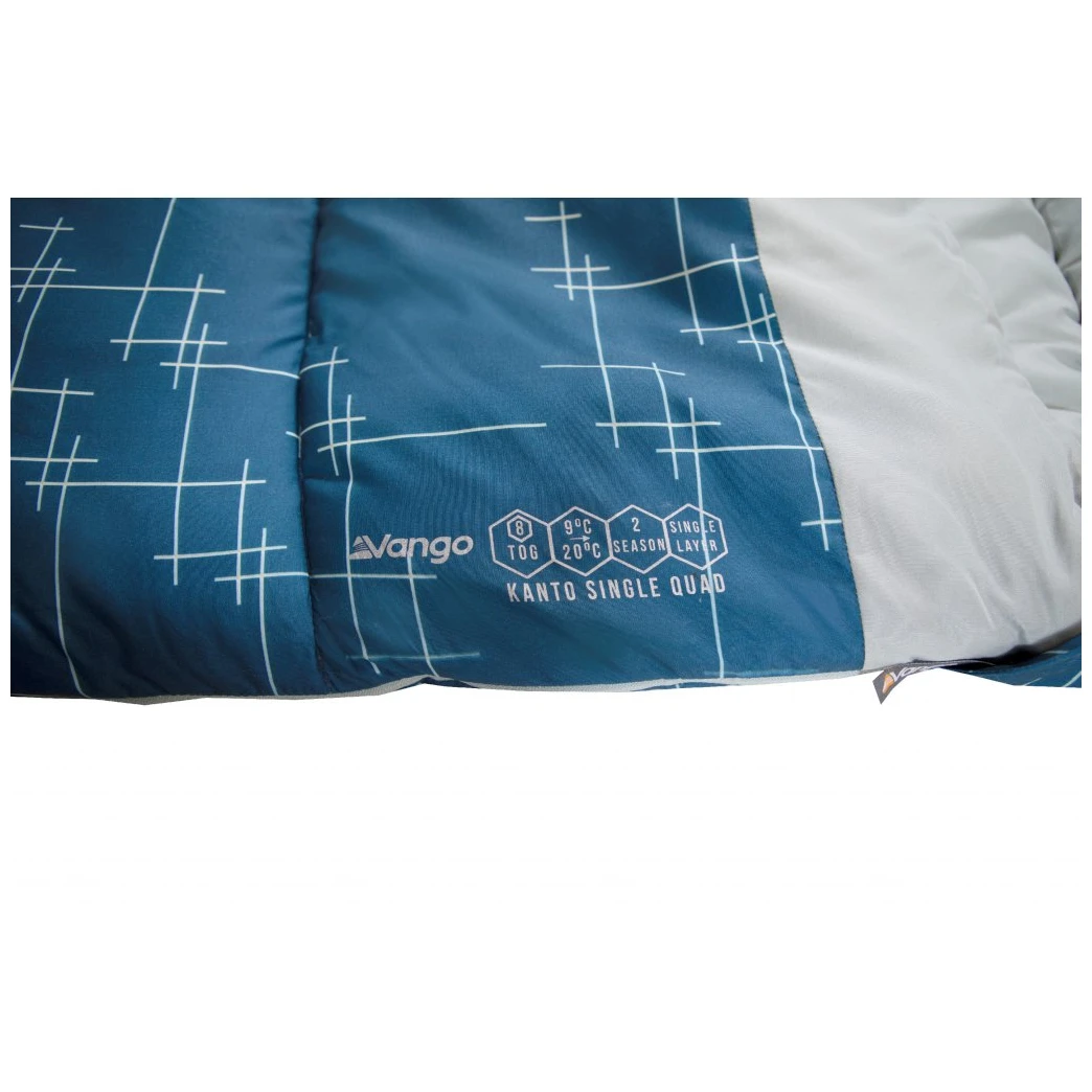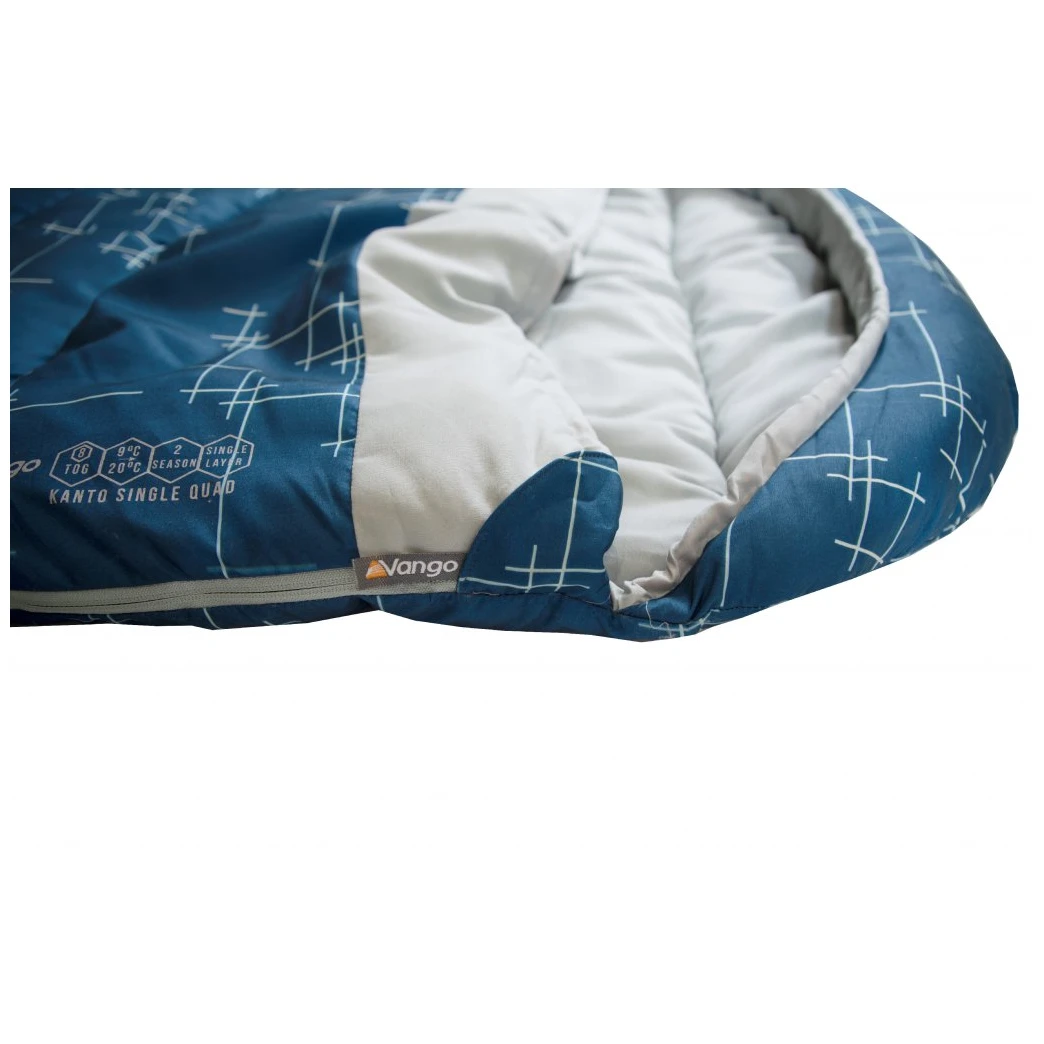 Der Kanto Single Quad von Vango ist ein Zwei-Jahreszeiten- Deckenschlafsack mit Kapuze, den du vor allem beim Camping an Wochenenden und auf Festivals verwenden wirst.Das Futtermaterial besteht aus gebürstetem Polyester Polair® Snug, das sich sehr angenehm anfühlt und eine ideale Wahl für heiße Nächte ist. Die Außenschicht aus dem gleichen Material schützt Sie dann vor Kälte. Die Konstruktion besteht aus einlagigen Nähten, die die Bildung von Kältebrücken verhindern und für eine gleichmäßige Verteilung der Füllung sorgen.