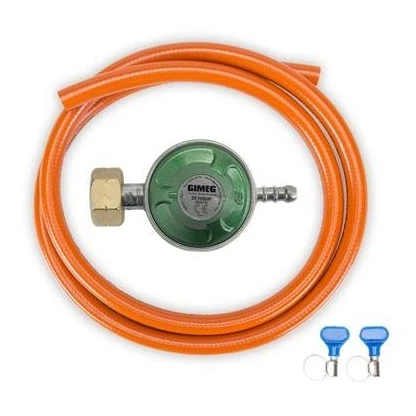 Der Druckregler mit 1,5m Schlauch mit 1/4" Gewinde der Marke Gimeg ermöglicht den einfachen Anschluss einer Gasflasche an einen Grill/Kocher. Besonders beim Camping oder auf der Hütte, wo viel Gerätschaft wie Grill, Kocher oder Herd vorhanden ist, wirst du die 30 Mbar Kombi zu schätzen wissen. Für den üblichen Gasflaschendruck von 2-8 Bar sind diese Geräte in der Regel nicht geeignet (die meisten Campingausrüstungen haben einen Arbeitsdruck von 30-50 Millibar). Der Regler hilft dabei, diesen Druck so einzustellen, dass er für Ihren Grill oder Herd sicher nutzbar ist. Beim Umgang mit Gas steht die Sicherheit immer an erster Stelle, weshalb die Regler Gimeg dem höchsten Sicherheitsniveau entsprechen.