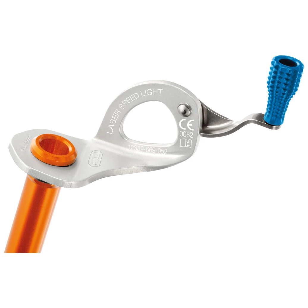 Ultraleichte Eisschraube mit integriertem Griff Petzl Laser Speed Light ist ideal zum Bergsteigen. Der leichte Aluminiumschaft ist mit einer eingepressten Stahlkrone mit Spikes ausgestattet, die das Anbohren erleichtert. Die integrierte Kurbel sorgt für optimale Hebelwirkung zum leichten und schnellen Einschrauben.