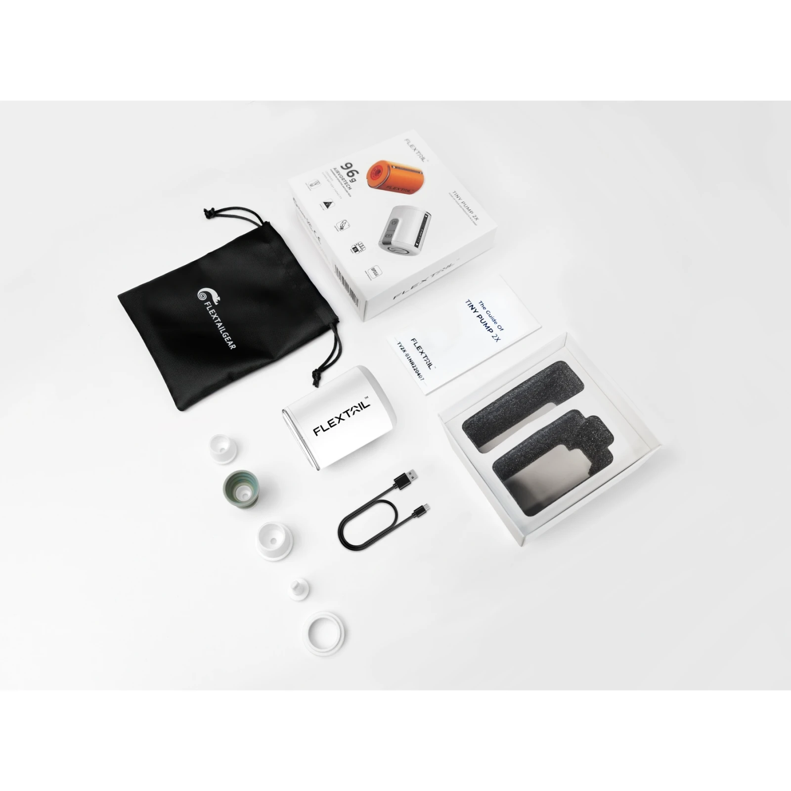 Die wasserdichte Miniatur-Outdoorpumpe Flextail Tiny Pump 2X erreicht einen Luftdruck von bis zu 4 kPa und einen Luftdurchfluss von 180 l/min. Die Pumpe ist mit einem 1600 mAh starken Akku ausgestattet und kann mit einer einzigen Ladung etwa 10 Isomatten aufblasen .