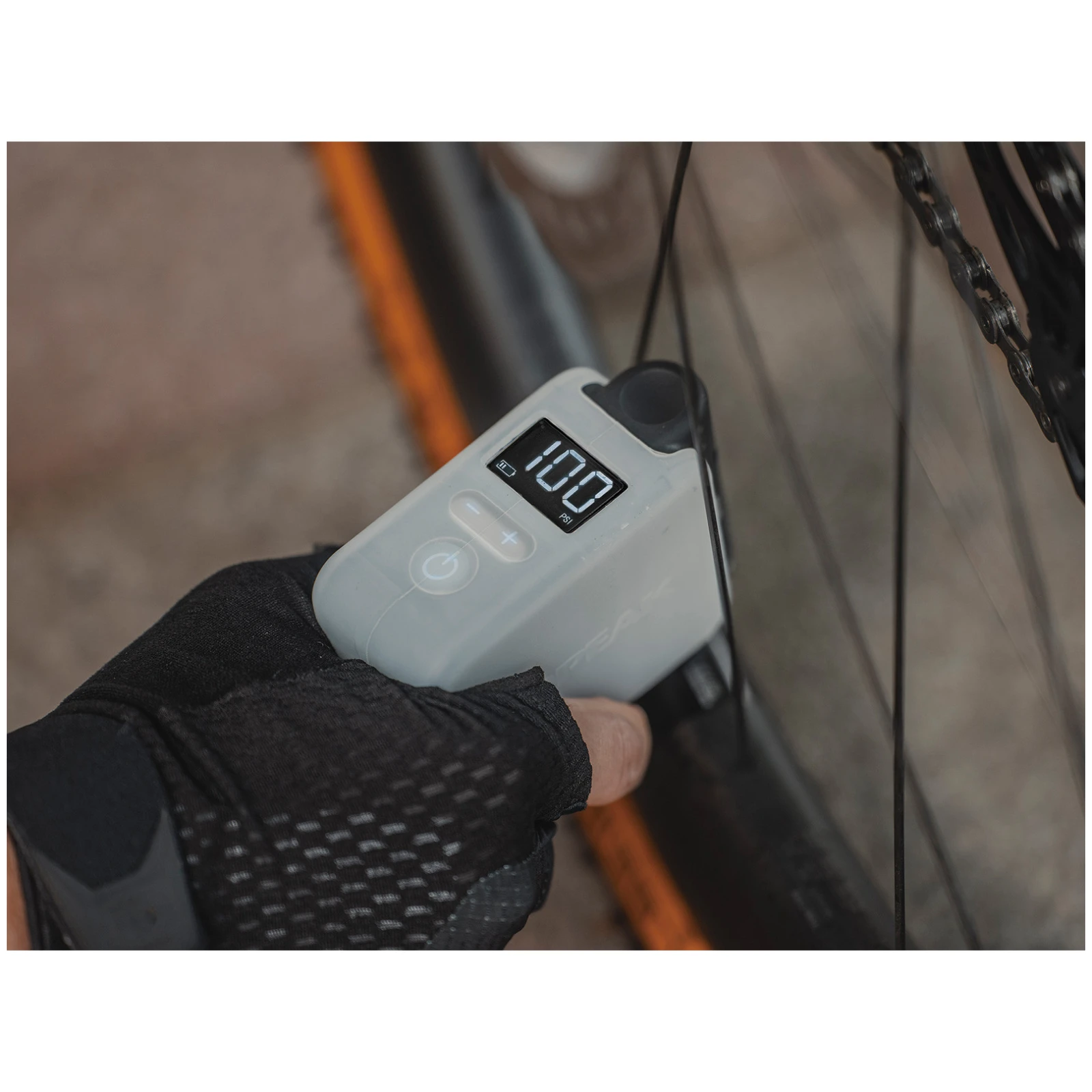 Die elektrische Topeak E-Booster Digital Pumpe ermöglicht es Ihnen, schnell und mühelos den genauen Druck in allen Arten von Fahrradreifen zu erreichen. Stellen Sie einfach den gewünschten Druck ein, drücken Sie den Knopf und den Rest erledigt die Pumpe für Sie.