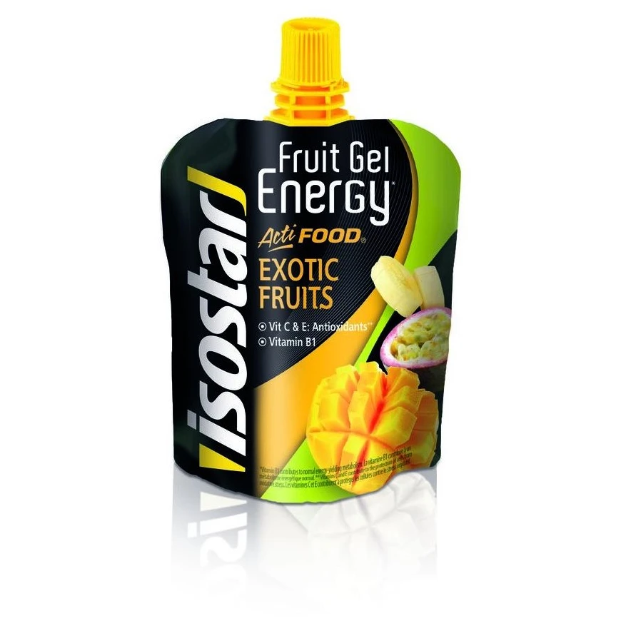 Energie-Gel Das Energie-Gel Actifood 90g der Marke Isostar ist die ideale Wahl für jede Aktivität, egal ob Wandern in den Bergen, Laufen oder Radfahren. In einer wiederverschließbaren Verpackung, die Sie nicht nur unterwegs zu schätzen wissen, finden Sie Fruchtgel mit echten Fruchtstücken. Dieses äußerst schmackhafte Gel liefert dank einfacher Kohlenhydrate einen sofortigen Energieschub, der Ihnen hilft, während des gesamten Rennens Ihre Höchstleistung aufrechtzuerhalten.