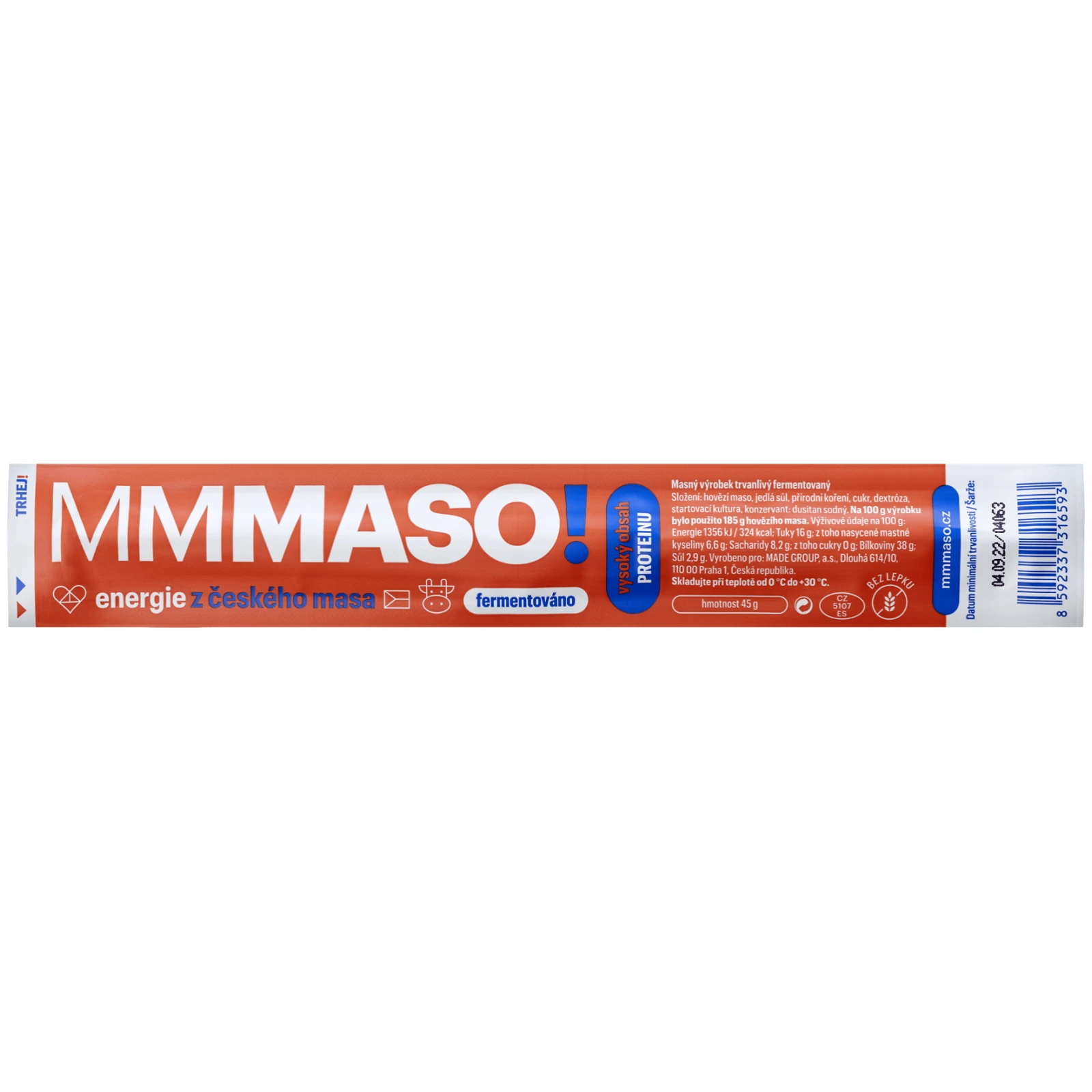Der Energiesnack MMMaso! mit hohem Proteingehalt aus Rindfleisch wird aus tschechischem Rindfleisch unter Verwendung traditioneller Fermentation hergestellt.