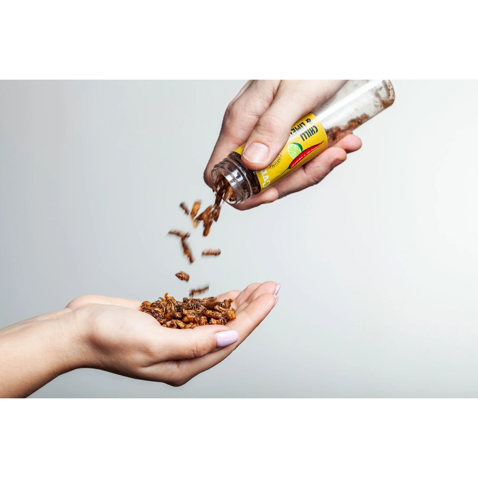 Bei der Herstellung der gerösteten Grillen mit Chili & Limette-Geschmack des Herstellers Sens wurden hochwertigste und leckerste Gewürze kombiniert mit kaltgepresstem Sonnenblumenölverwendet. Durch die durchsichtige Röhre macht das Grillenessen noch mehr Spaß. Sie können sie direkt in Ihren Mund gießen.