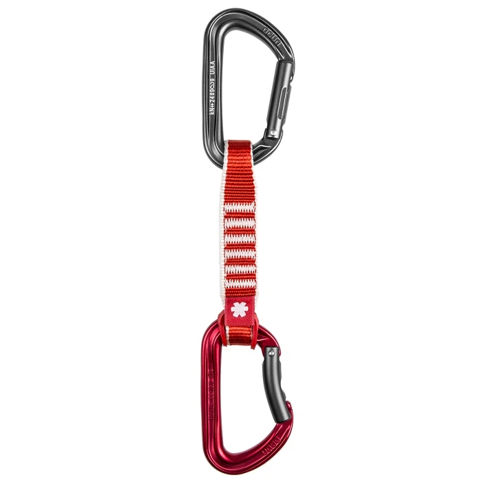 Leichteres Express-Set HAWK QD ZOOM PA 15/22 mm 12 cm von Ocún zum Klettern von RP-Routen, aber auch zum technischen Bergsteigen. Der verlängerte Gurt erleichtert das Greifen und der Hawk-Karabiner sorgt für geringes Gewicht und hohe Festigkeit.