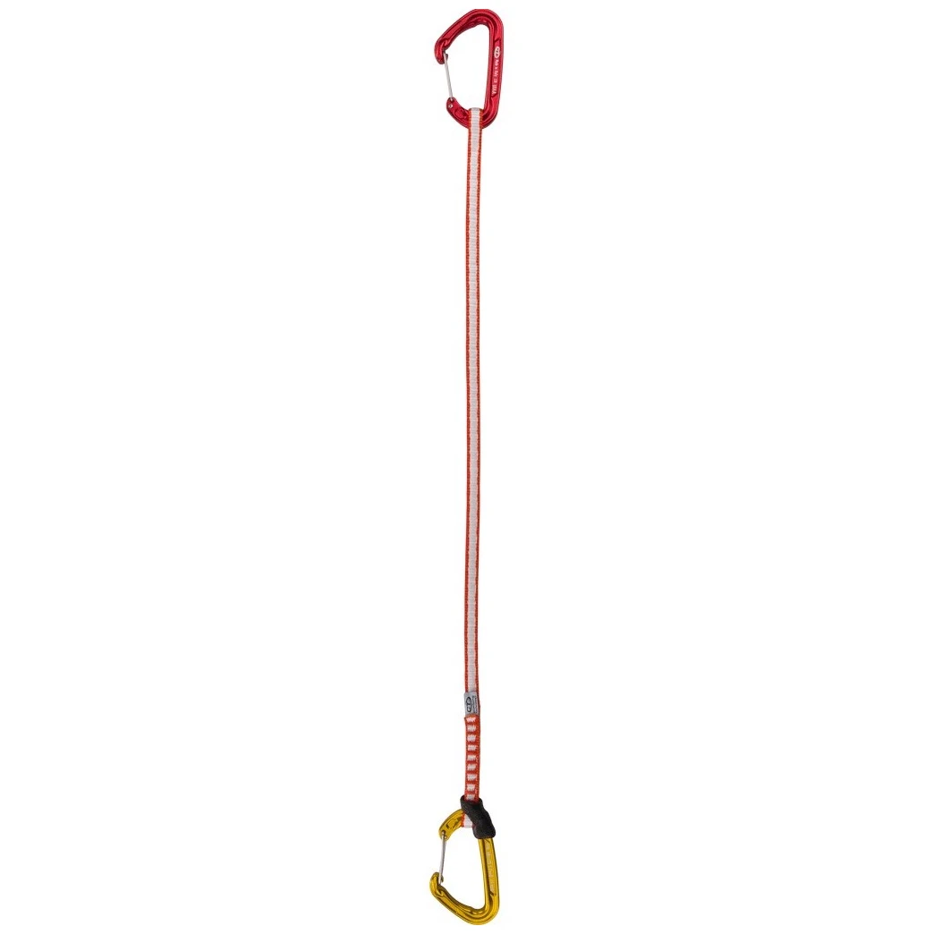 Darüber hinaus überrascht der Expresswagen mit seinem geringen Gewichtvon nur 74 g. Trotz seines geringen Gewichts ist es sehr robust und langlebig. Die Karabiner verfügen dann über einen ausreichend breiten Verschluss, um sie überall einrasten zu können. Das System besteht aus zwei Karabinern, einer 10 mm Dyneema-Schlaufe und einem patentierten Fixit-Gummiband für einen sicheren Karabinersitz.