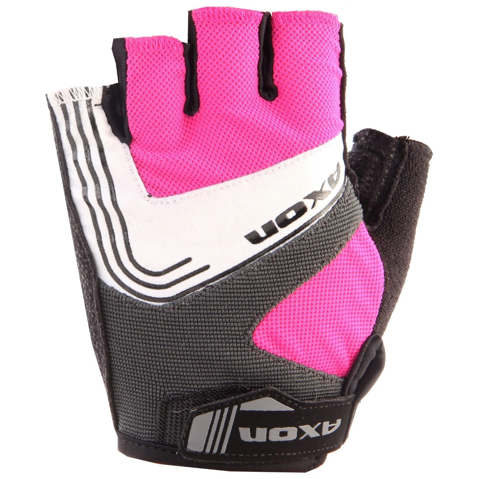 Die Kurzfinger- Fahrradhandschuhe Axon 395 der tschechischen Marke Axon sind ideale Fahrradhandschuhe für ganztägige Fahrten. Der obere Teil ist eine Kombination aus Nylon, Lycra und Mesh mit einem sanften Klettverschluss. Die Handfläche besteht aus strapazierfähigem flexiblem Digital Pittards-Leder mit einer 6 mm dicken Gelpolsterung. Am Daumen befindet sich ein weiches Frottee-Schweißband und zwischen den Fingern befinden sich Schlaufen zum einfachen Ausziehen. Der Handschuh ist für Radfahrer konzipiert, die die deutliche Dämpfungsfähigkeit der Handfläche schätzen.