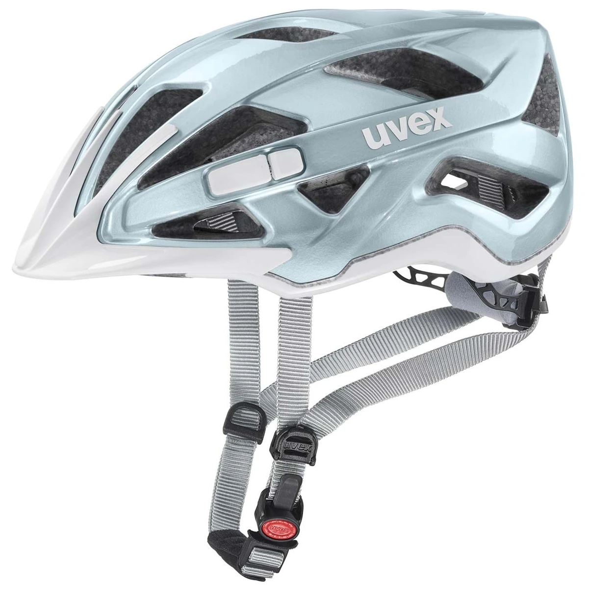 Fahrradhelm Uvex Active mit Schalenkonstruktion Double Inmould. Es handelt sich um eine solide Polycarbonatschale kombiniert mit EPS-Schaum, die Schutz und Komfort bietet. EPS-Schaum wird direkt in die Außenschale eingespritzt und bildet eine Einheit. Es ist mit einem komfortablen Monomatic -System ausgestattet – Befestigung am Kinn mit einer Hand. Sicherer Sitz auf dem Kopf dank Klemmsystem 3D IAS 3. 0 – der Helm lässt sich in Höhe und Weite verstellen und sorgt so nicht nur für maximale Sicherheit, sondern auch für Ihren Komfort. Dank dem Fast-Adapting-System (FAS) lassen sich die Bänder einfach und stufenlos an Ihre Gesichtsform anpassen. So sitzt der Helm in jeder Situation sicher auf dem Kopf und die Gurte befinden sich in einer angenehmen Position. Für maximale Belüftung sorgen 19 Belüftungslöcher. Dieser Helm verfügt außerdem über ein Insektenschutzgitter (in den Belüftungslöchern), herausnehmbare antiallergische Polster Basic-Polster und eine Vorbereitung für LED-Licht.