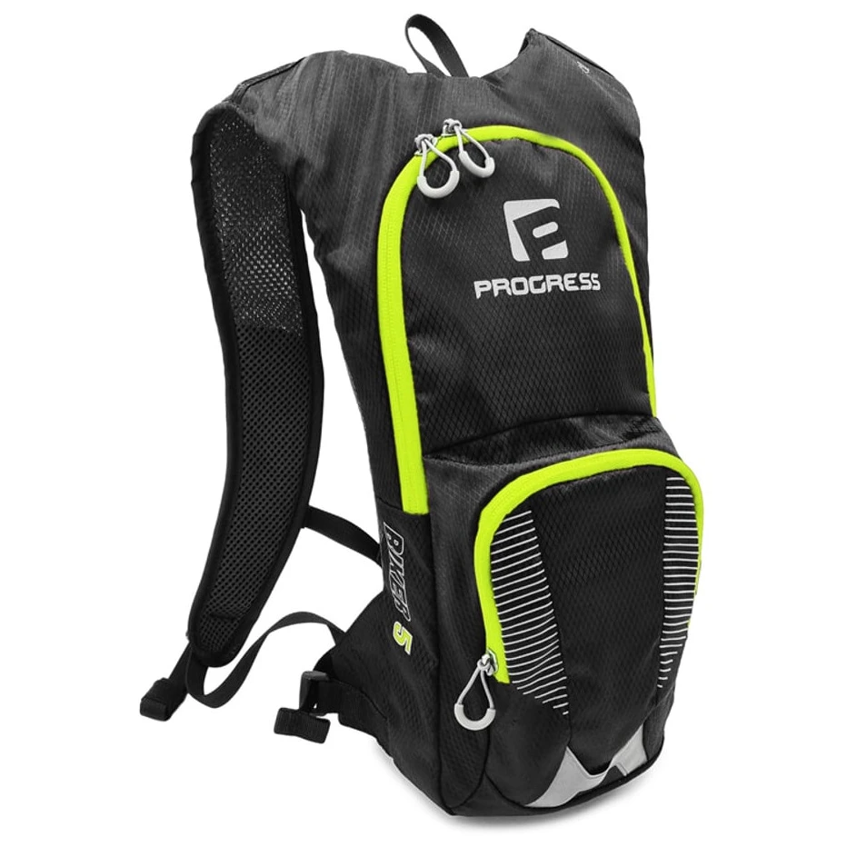 Der kleine Fahrradrucksack Biker von Progress eignet sich für eine Trinkblase oder Kleinigkeiten, die Sie auf Ihren Radtouren mitnehmen möchten. Der Rucksack verfügt über ein bequemes, gepolstertes Rückensystem, ein Hauptfach mit Fach für eine 2-Liter-Trinkblase und eine Reißverschlusstasche vorne mit Organizer für kleinere Gegenstände und einem Schlüsselkarabiner. Der Rucksack verfügt außerdem über einen abnehmbaren Hüftgurt. Bequeme, verstellbare Schulter- und Brustgurte sowie reflektierende Elemente sind selbstverständlich.