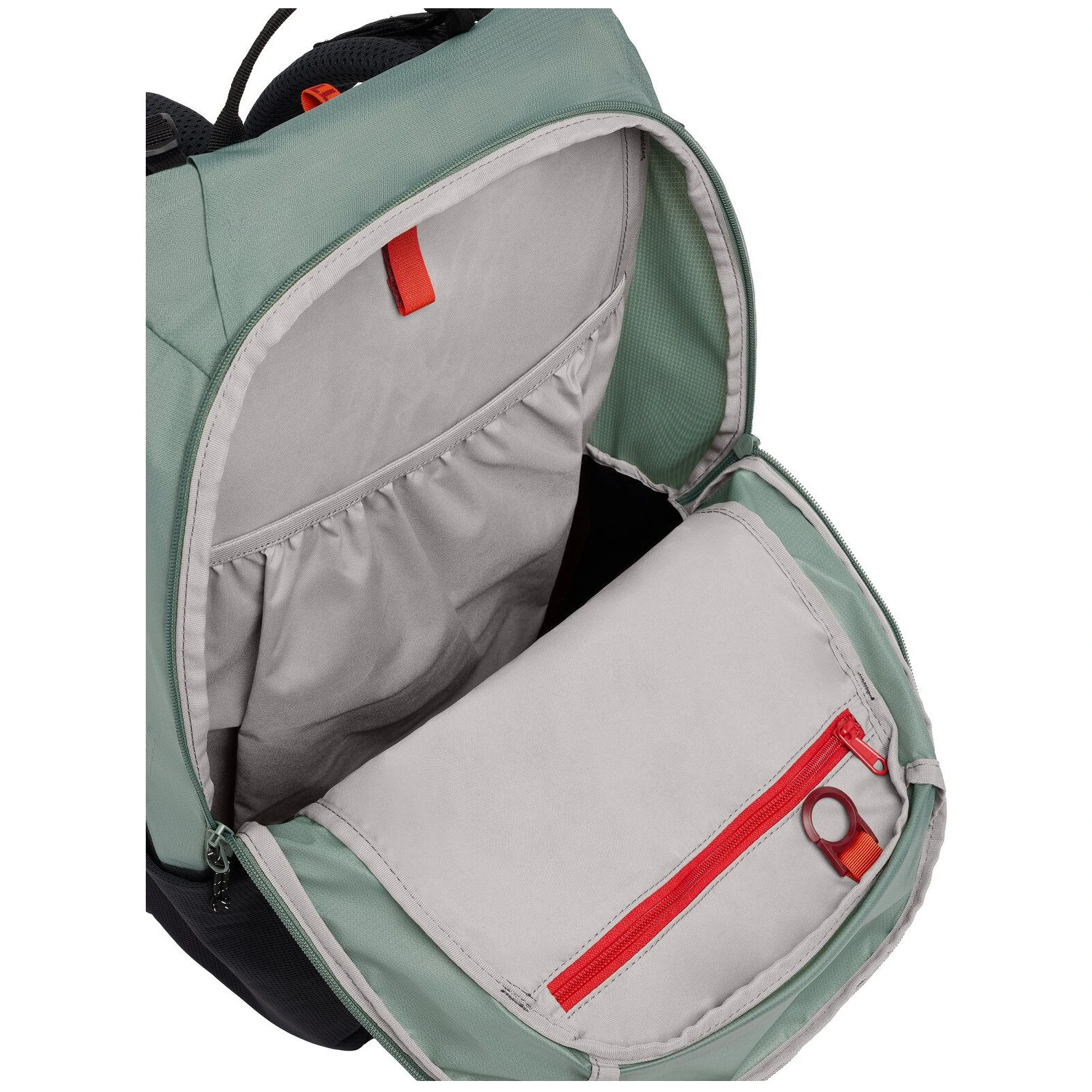 Das Mesh-Rückensystem schafft Platz zwischen Ihrem Rücken und dem Rucksack. Die Luft kann frei zirkulieren, was die Rückenbelüftung verbessert und die Schweißverdunstung beschleunigt. Der Nachteil ist eine leichte Verringerung des Innenvolumens und ein schlechterer Schwerpunkt.
