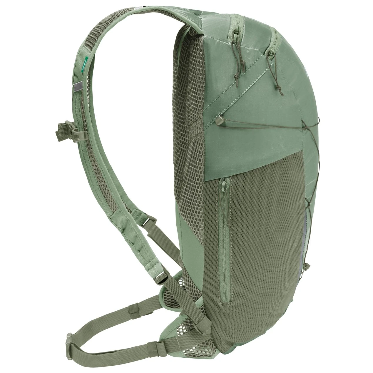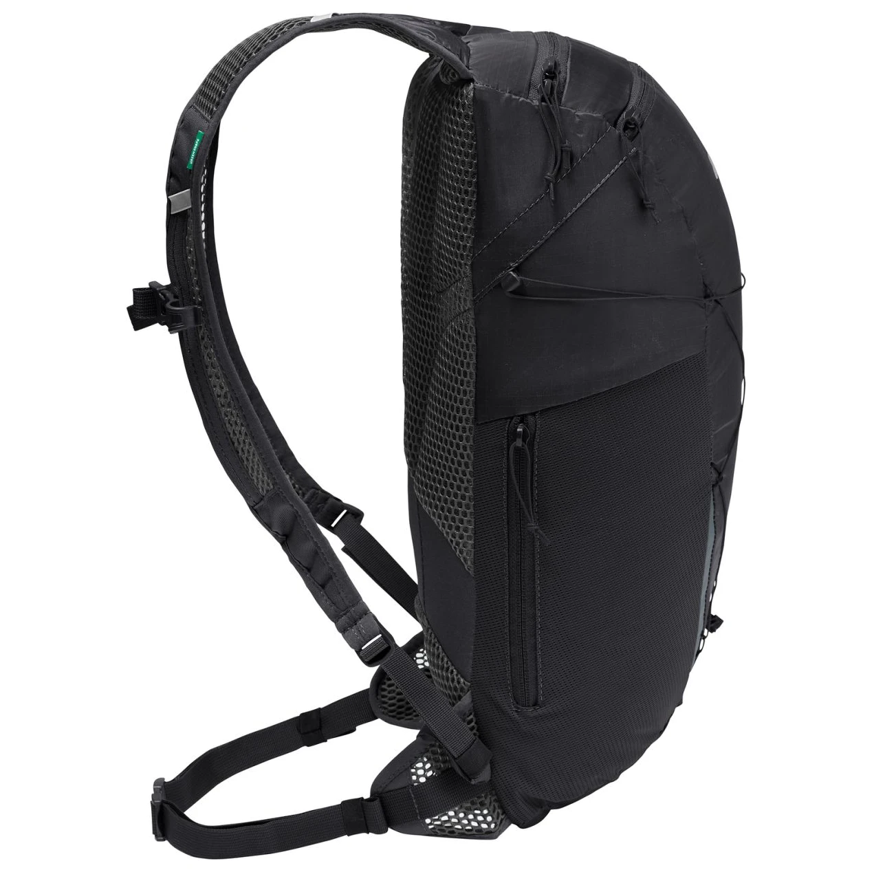 Der leichte Fahrradrucksack Uphill 12 der Marke Vaude ist sehr leicht und bietet dennoch einen erstaunlichen Tragekomfort. Die Hauptkammer bietet ein Volumen von 12 Litern. Praktische Netz- und Seitentaschen bieten Platz für Telefon oder Snack. Die Frontschnürung erfüllt drei Funktionen: Stauraum für eine Wind- oder Regenjacke, wenn das Hauptfach voll ist, Kompression für weniger Gewicht und Befestigung von Trekkingstöcken. Für eine gute Belüftung sorgt 3D-Mesh am Rücken und an den Schultergurten. Der Rucksack verfügt über reflektierende Elemente und einen Regenschutz. Das Hauptmaterial dieses leichten Rucksacks wurde in einem zertifizierten Massenbilanzverfahren hergestellt, bei dem Pyrolyseöl aus Altreifen gewonnen und einem konventionellen Polyamid-Herstellungsprozess zugeführt wird.