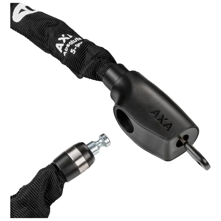 Das Fahrradkettenschloss Chain Absolute 5 – 90 der Marke AXA ist aus gehärtetem Stahl gefertigt und verfügt somit über ein Sicherheitslevel von 7/15 . Die Kette ist in einer hochwertigen Polyesterverpackung aufbewahrt, hat eine Länge von 90 cm und einen Durchmesser von 5 mm. Zum Verriegeln ist kein Schlüssel erforderlich und der Schließmechanismus selbst ist mit einer Staubkappeausgestattet, die eine Verunreinigung verhindert.