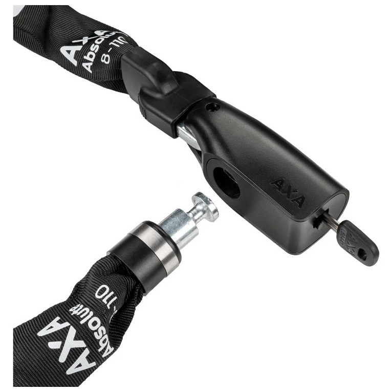 Das Fahrradkettenschloss Chain Absolute 8 – 110 der Marke AXA ist aus gehärtetem Stahl gefertigt und verfügt somit über ein Sicherheitslevel von 9/15 . Die Kette ist in einer hochwertigen Polyesterverpackung aufbewahrt, hat eine Länge von 110 cm und einen Durchmesser von 8 mm. Zum Verriegeln ist kein Schlüssel erforderlich und der Schließmechanismus selbst ist mit einer Staubkappeausgestattet, die eine Verunreinigung verhindert.