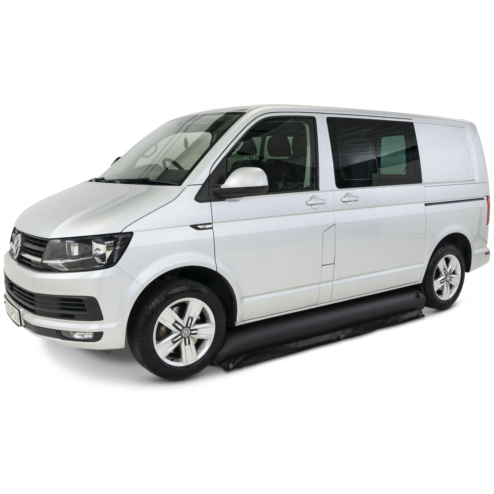 Die aufblasbare Windschutzabdeckung SML der Marke Dometic besteht aus strapazierfähigem PVC-Material und wird einfach unter Ihr Wohnmobil gelegt und aufgeblasen. Dadurch wird verhindert, dass unangenehme Zugluft in die Markise eindringt oder Haustiere unter das Fahrzeug flüchten.