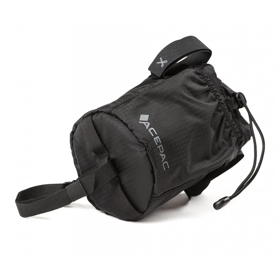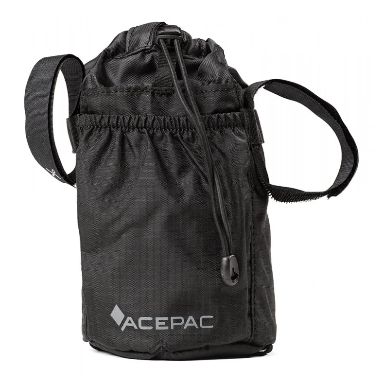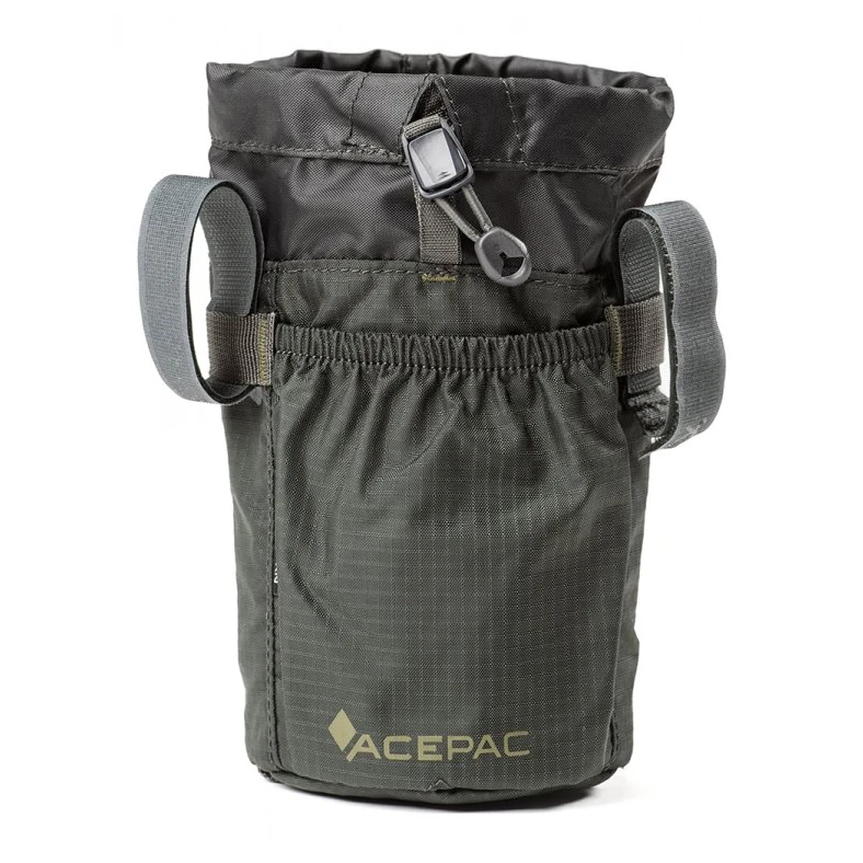 Fahrradtasche Acepac Fat Bottle Bag MKIII ist eine geräumige Lenkertasche, die Sie für Fahrradflaschen mit einem Volumen von bis zu 1L oder zum Transport von Lebensmitteln oder Kleinigkeiten verwenden können.