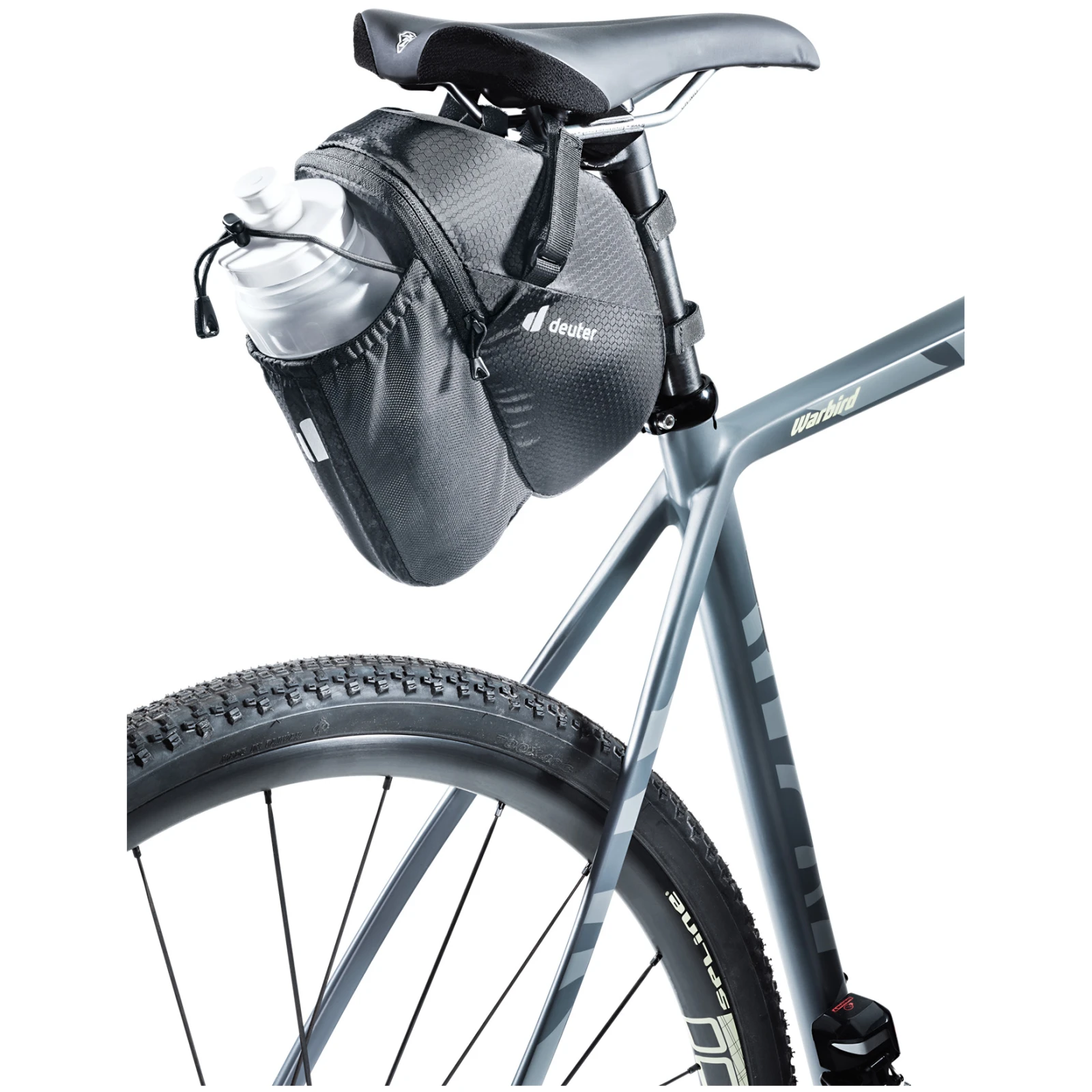 Minimalistische, leichte Tasche Deuter Bike Bag 1.2 Flasche fürs Fahrrad mit Reißverschluss, die du immer griffbereit hast. Sie bietet Platz für Schlauch, Geld und Schlüssel. Das Flaschenetui besteht aus Mesh-Material. Im Inneren der Tasche befindet sich noch ein weiteres Fach für beispielsweise Multifunktionswerkzeug etc.
