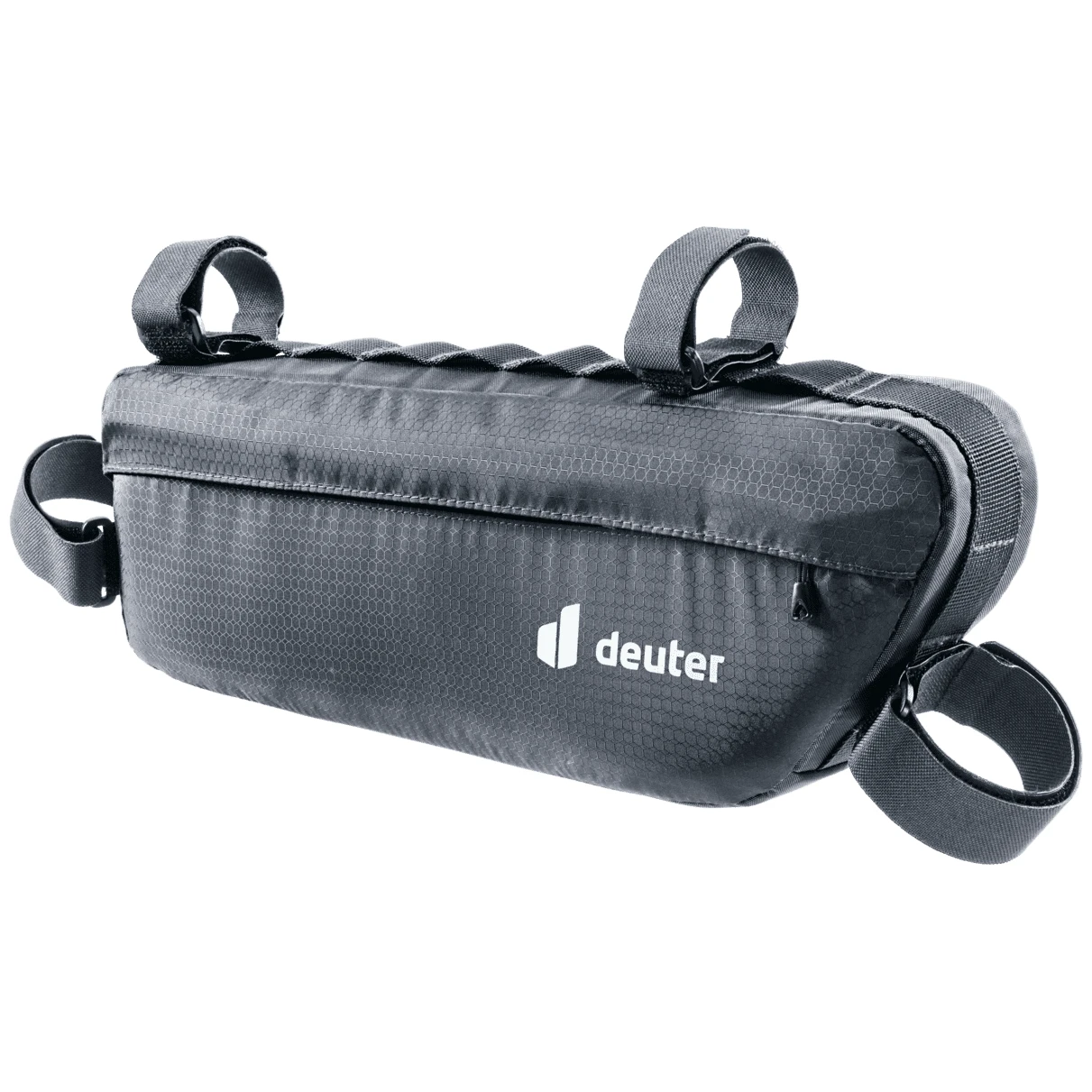 Leichte Rahmentasche Deuter Mondego FB 6 für Einsteiger ins Bikepacking, hergestellt aus strapazierfähigem, recyceltem Material mit bluesign®-Zertifikat und reflektierenden Elementen. Der Zugriff erfolgt per Zip. Zur Befestigung stehen vier Doppel-Klettverschlussstreifenzur Verfügung, die auf unterschiedliche Rahmengrößen und Rohrdurchmesser anwendbar sind.