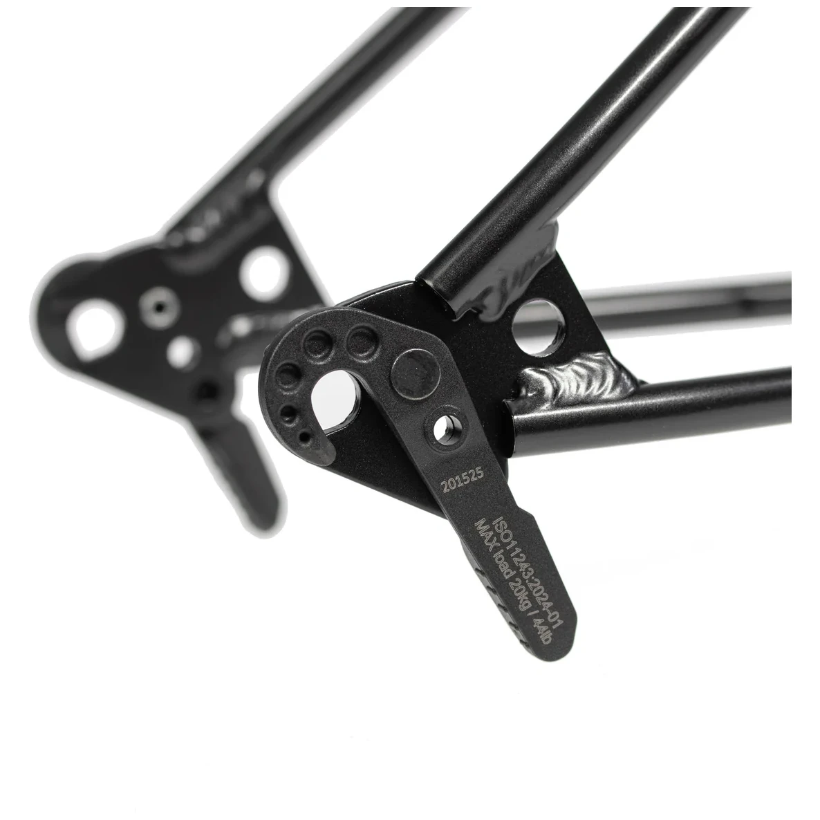 Die Variante Quick Rack L ist eine verlängerte Version, die eine Befestigung an der Fahrradachse ermöglicht. Die Kompatibilität reicht bis zu einer Größe von 28 x 2" bei Montage über eine feste Achse und bis zu 2,9"/3" bei direkter Installation.