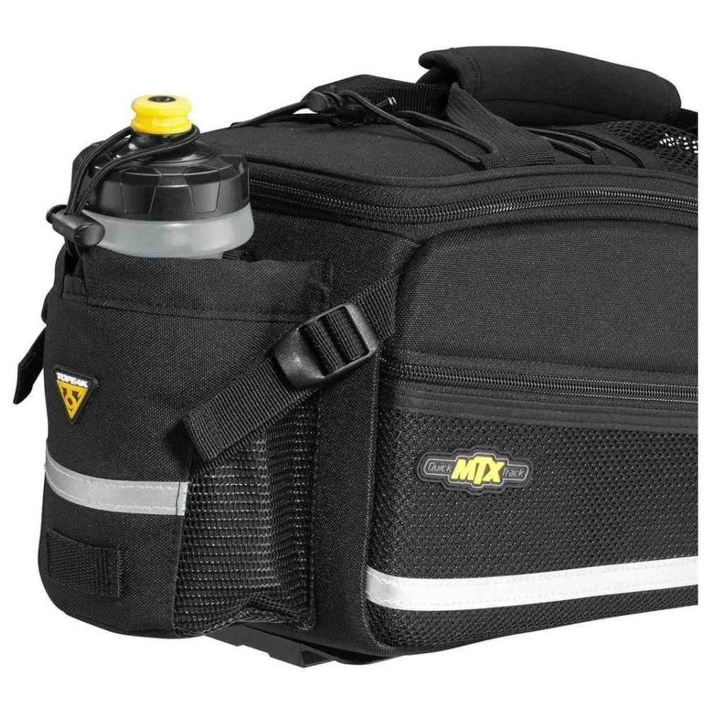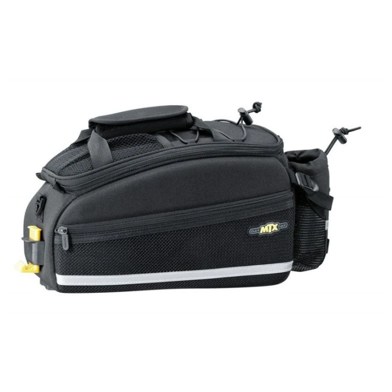 Heckgepäckträgertasche mittlerer Kapazität Topeak Mtx Trunk Bag Ex. Der Raum ist in ein Hauptfach und zwei seitliche Reißverschlusstaschen unterteilt. Die Tasche kombiniert formstabiles Material mit flexiblem und strapazierfähigem 600-Denier-Gewebe. Die Tasche ist für alle Gepäckträger Topeak mit dem MTX QuickTrack™-System geeignet.