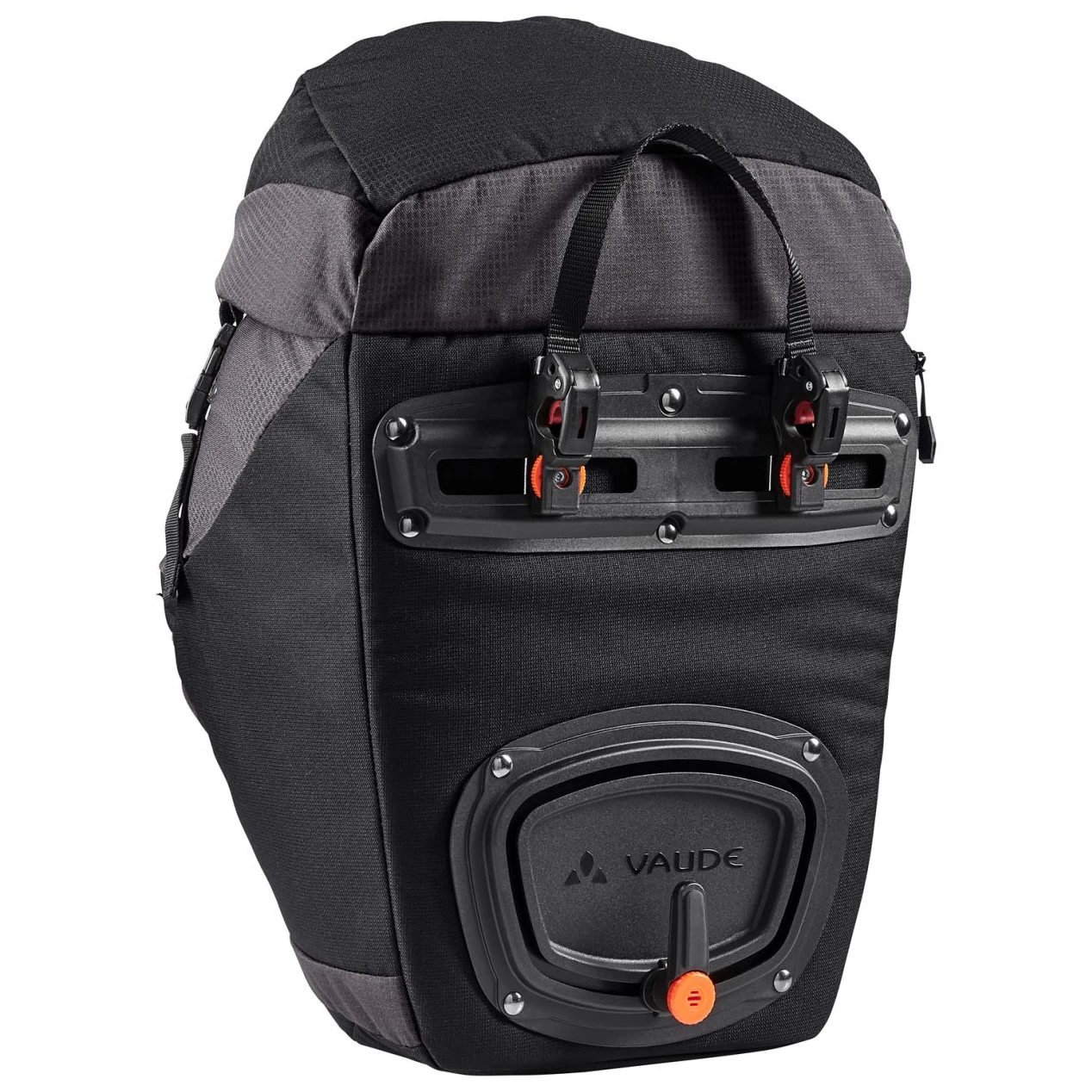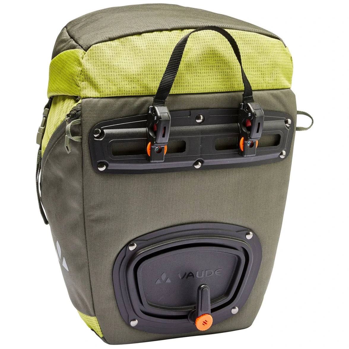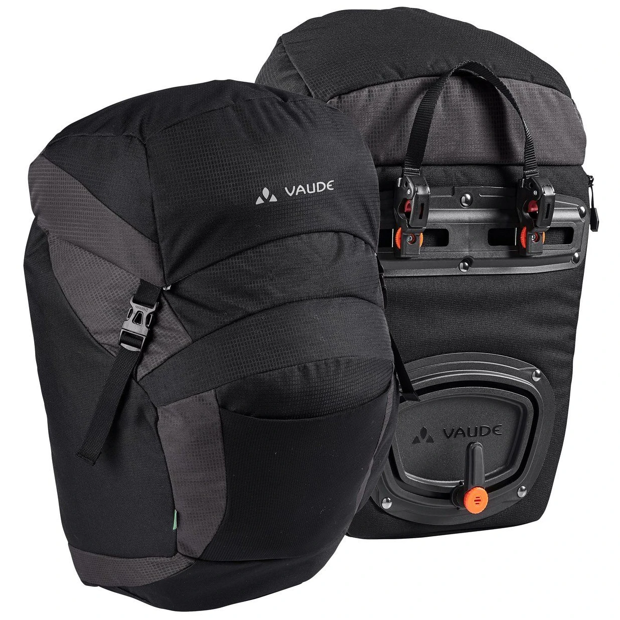Fahrradtaschen OnTour Front der Marke Vaude sind geräumig und verfügen über Seitenfächer zur Aufbewahrung von Kleinigkeiten. Die Taschen verfügen über reflektierende Elemente und lassen sich mithilfe des QMR 2.0-Systemsrechts und links am Frontgepäckträger sicher befestigen. Sie lassen sich über leicht bedienbare Handräder verstellen und schnell und einfach abnehmen. Sie können mit einem kleinen Bügelschloss (145/20) direkt am QMR -Haken befestigt werden. Im Lieferumfang enthalten sind Regenmäntel für beide Taschen. Die Taschen sind dauerhaft wasserabweisend PFC-frei mit Eco Finish. Gut für Sie und die Umwelt.
