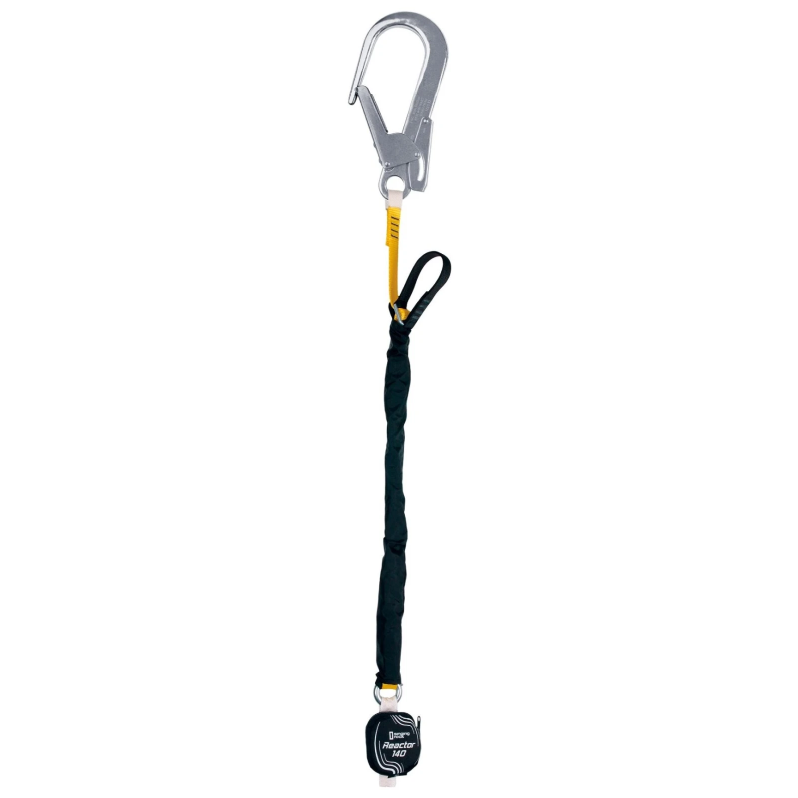 Falldämpfer Singing Rock Reactor 140 Adjust ist mit einem längenverstellbaren Verbindungsmittel mit Stahlschnalle und Textilgriff ausgestattet, das sich auch unter Last leicht lösen lässt (Verbindungsmittellänge 80–145 cm). Der Falldämpfer ist dafür ausgelegt, eine Person mit einem Gewicht bis zu 140 kg (samt Ausrüstung) sicher aufzufangen. Die maximale aktive Reißlänge beträgt 175 cm. Der innenliegende orangefarbene Auslöseindikator des Auffanggeräts ermöglicht eine schnelle und einfache Kontrolle.