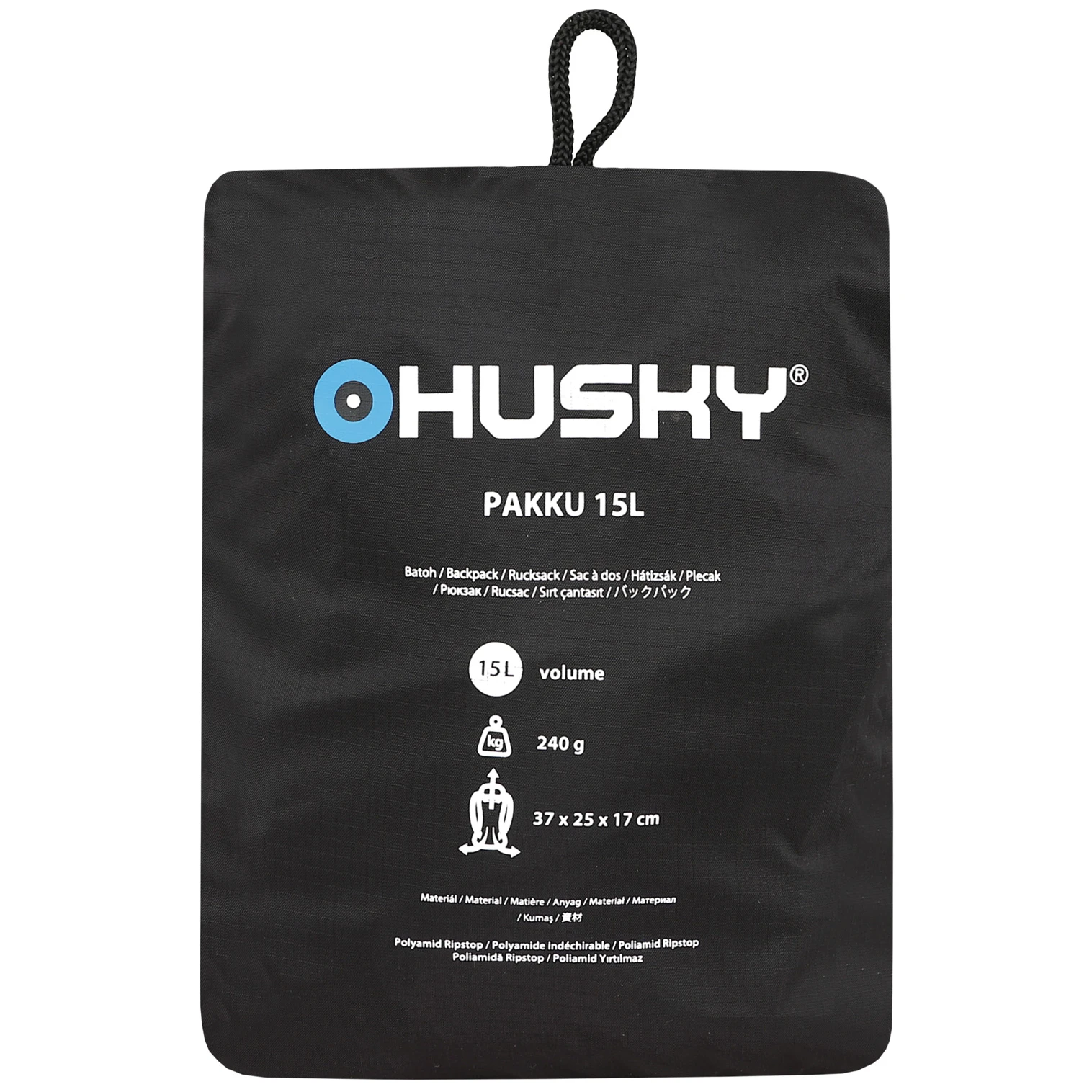 Leichter und verpackbarer Rucksack Husky Pakku 15 l mit kompakten Maßen für Kurztrips, Radtouren und Reisen. Es lässt sich leicht in einer kleinen Reißverschlusstasche verstauen, sodass es keinen Platz wegnimmt.
