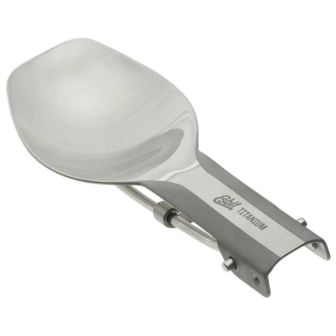 Der praktische Klapplöffel aus Titan der Marke Esbit ist sehr kompakt und leicht. Der Griff ist faltbar, sodass er problemlos in Ihre Tasche passt. Der in den Mund eingesetzte Teil ist poliert. Der Löffel wiegt nur 18 Gramm. Titan ist außerdem sehr korrosionsbeständig und weist ein hervorragendes Verhältnis von Gewicht zu Festigkeit auf.