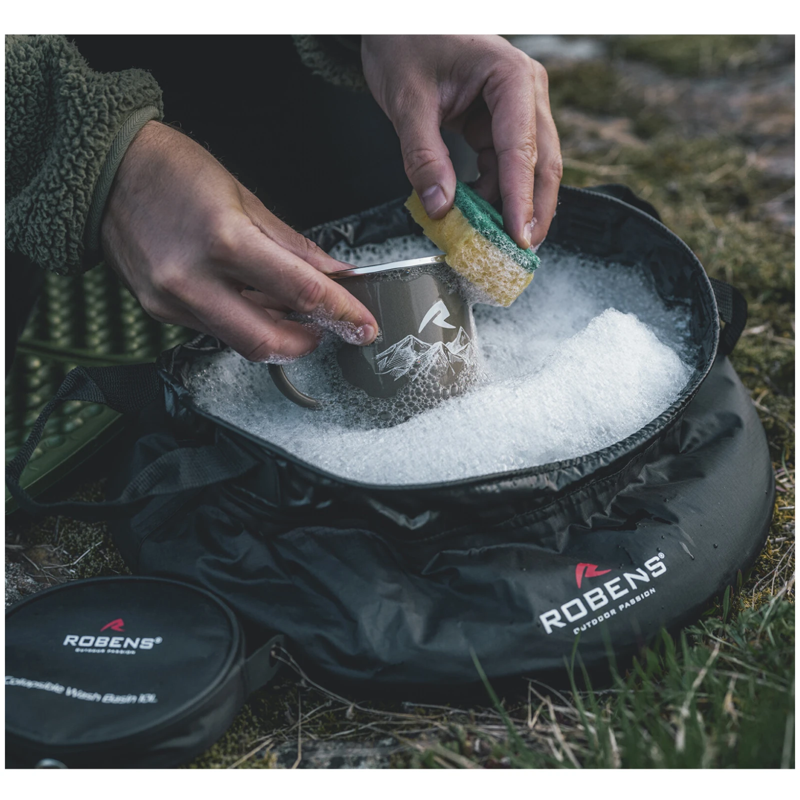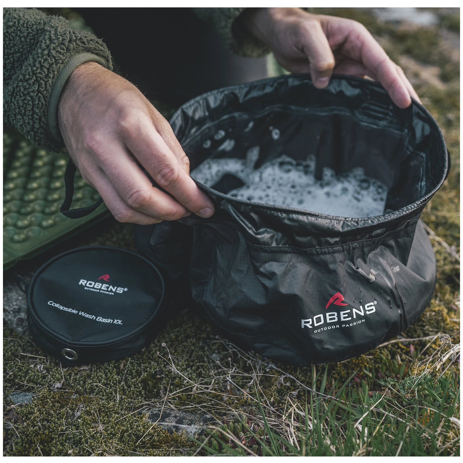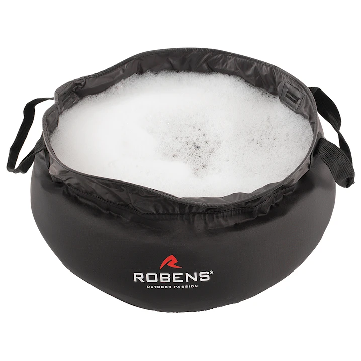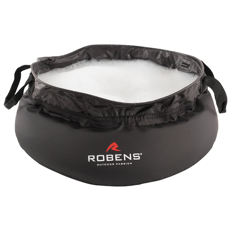 Faltbares Waschbecken Das faltbare Waschbecken 10L der Marke Robens hat ein Volumen von 10 Litern. Sie können darin bequem Geschirr spülen, Ihre Körperpflege erledigen, Wäsche waschen oder auf Reisen oder in der Natur Wasser transportieren.