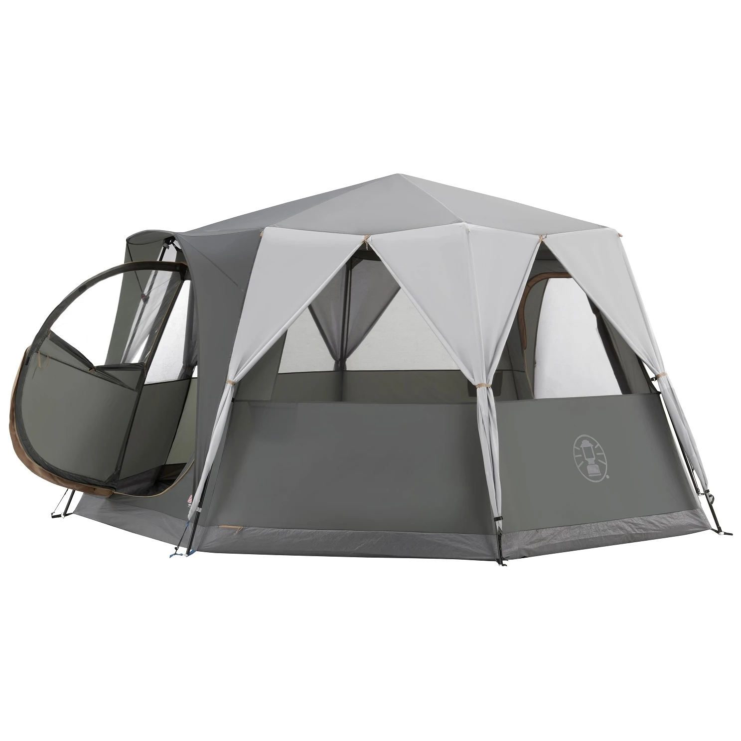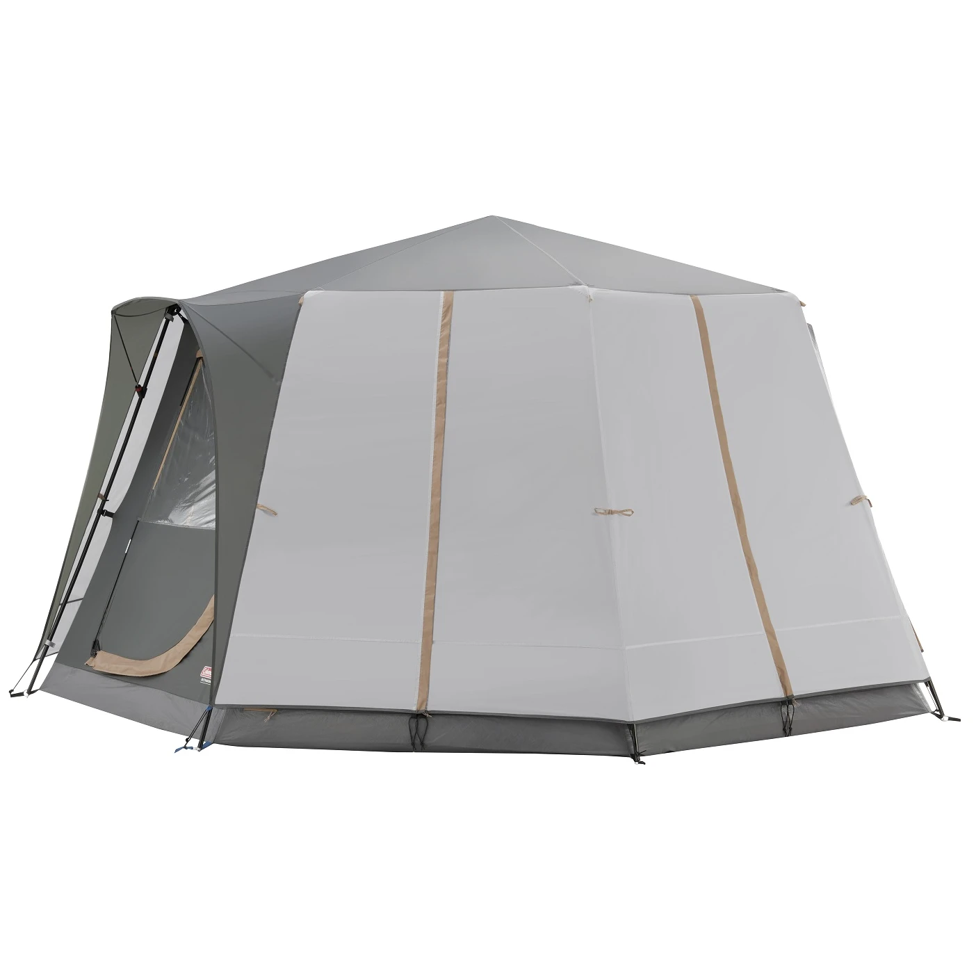 Das Original Octagon 8 Familienzelt des amerikanischen Herstellers Coleman in Jurtenform sorgt für noch nie dagewesenen Platz und Komfort. Die einzigartige D-förmige Tür ist mit Scharnieren versehen und erleichtert den Zugang zum Zelt. Eine Transporttasche auf Rollen ist selbstverständlich im Paket enthalten. Das Zelt eignet sich perfekt für mehrtägiges Camping mit Familie oder Freunden an einem Ort.